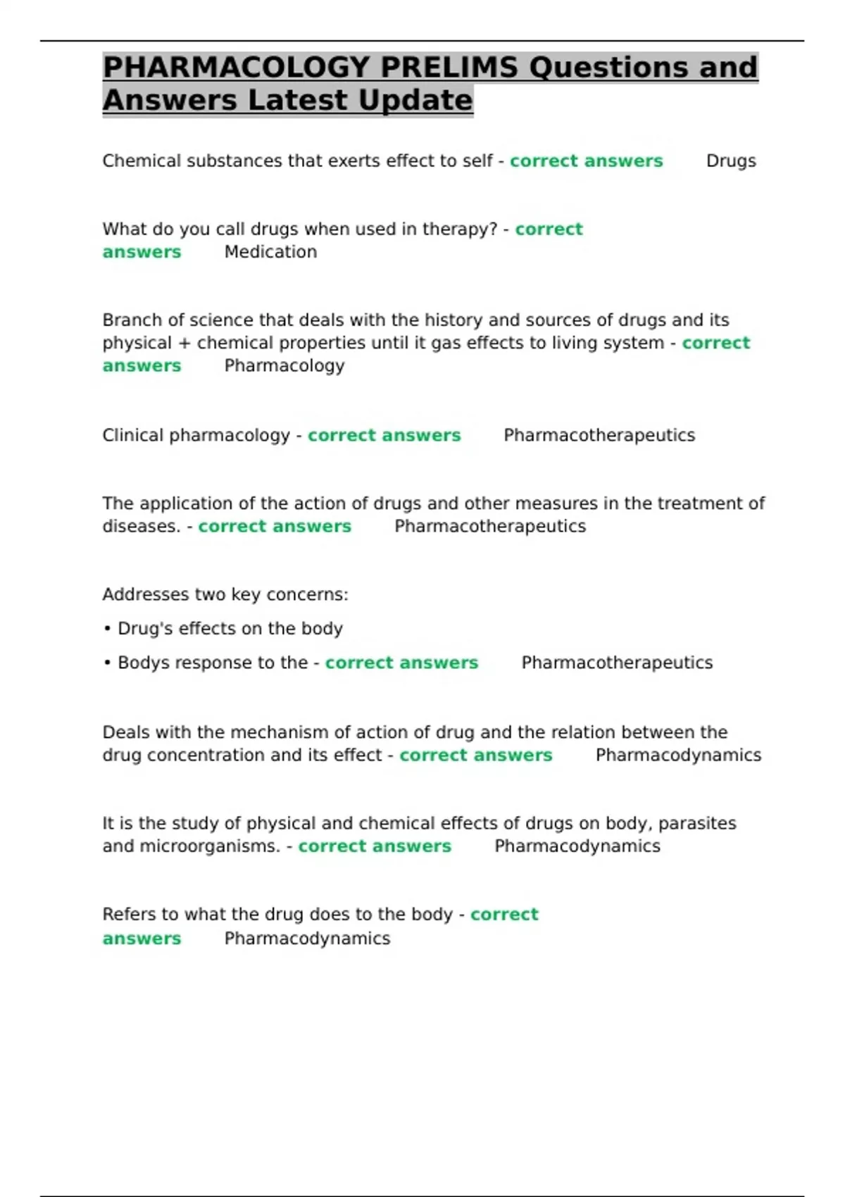 • Bodys response to the - correct answers✅✅Pharmacotherapeutics