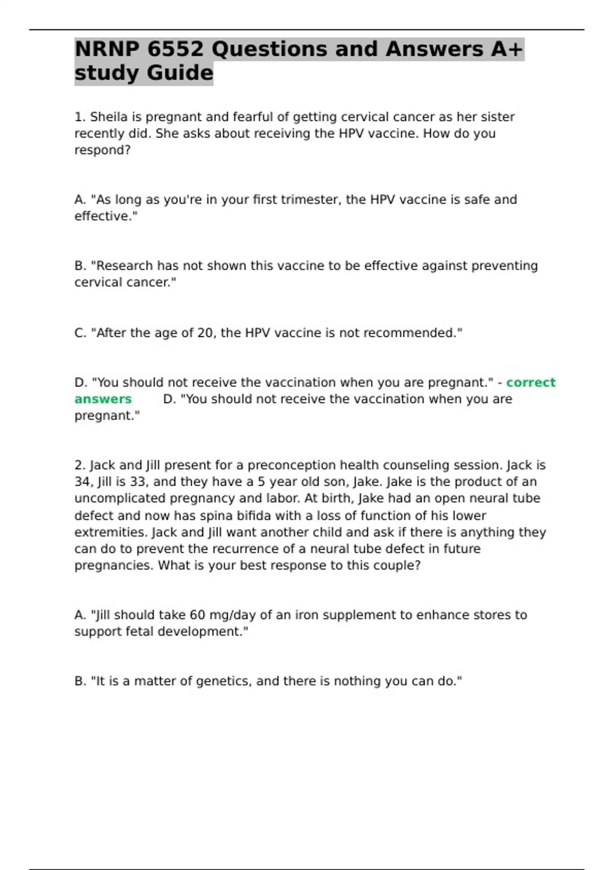 ,NRNP 6552 Questions and Answers A+