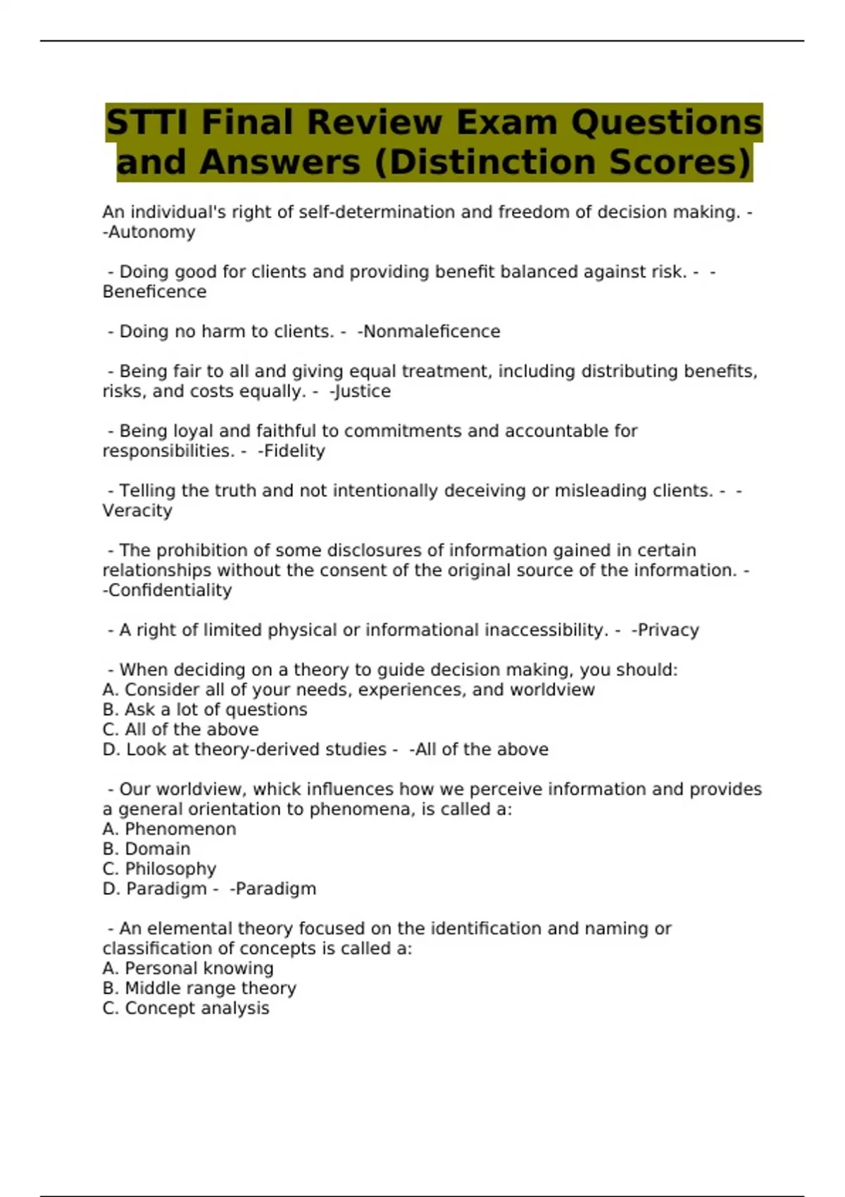 STTI Final Review Exam Questions and Answers (Distinction Scores)