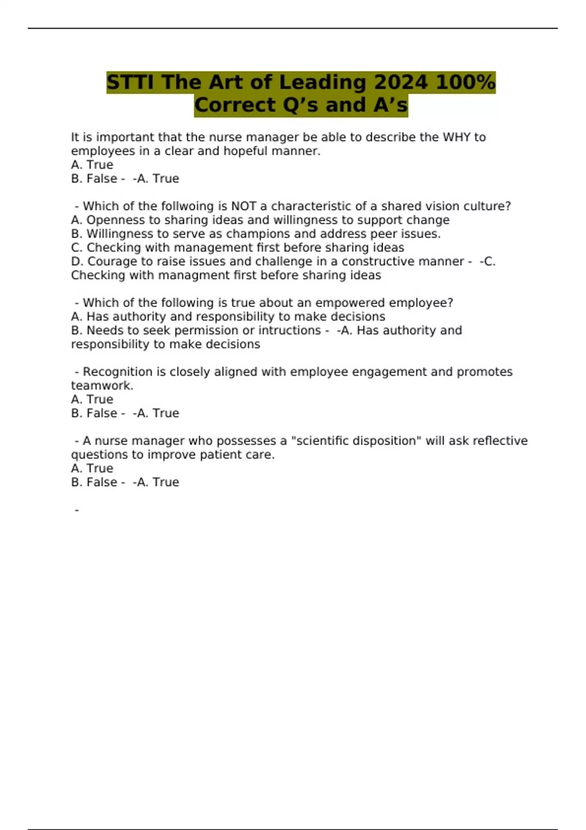 - Which of the follwoing is NOT a characteristic of a shared vision culture?
