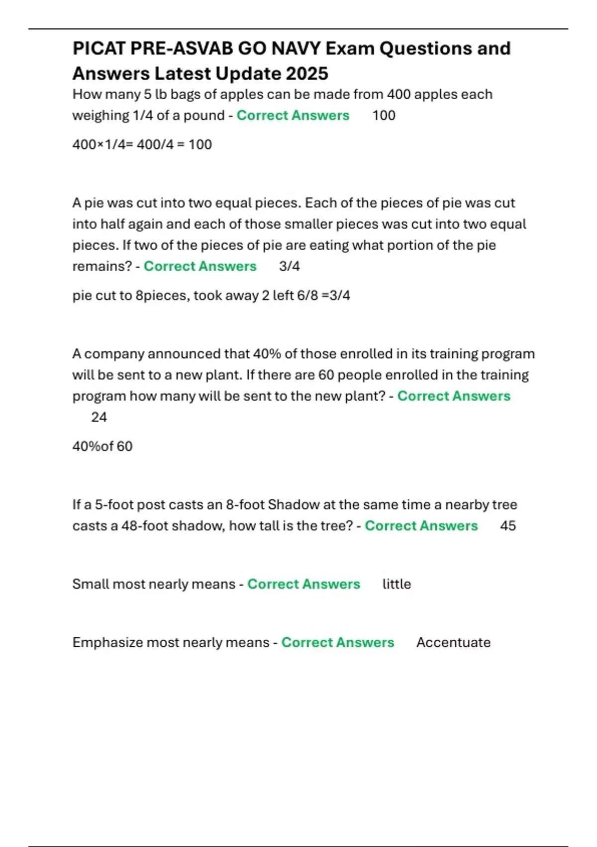 ,PICAT PRE-ASVAB GO NAVY Exam Questions and