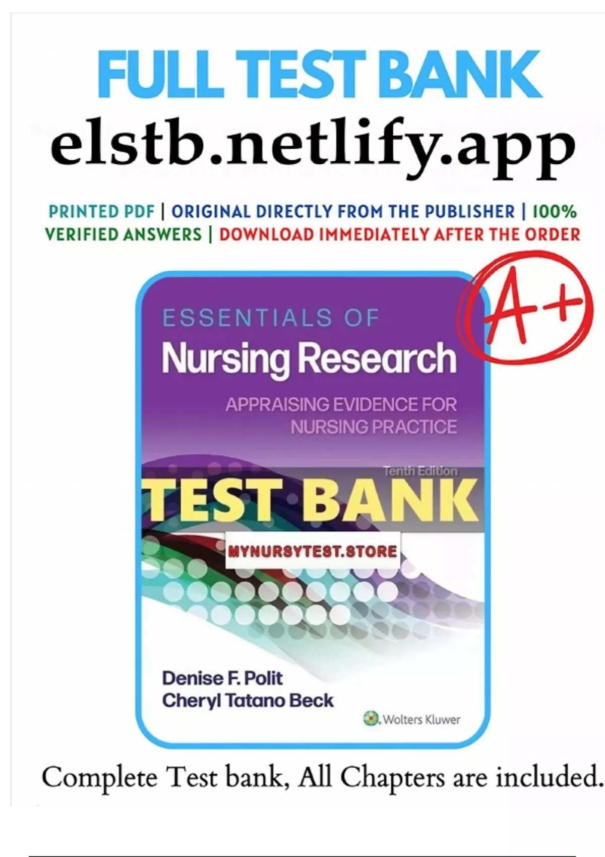 , DOWNLOAD THE Test Bank for Essentials of Nursing Research 10th EditionPolit