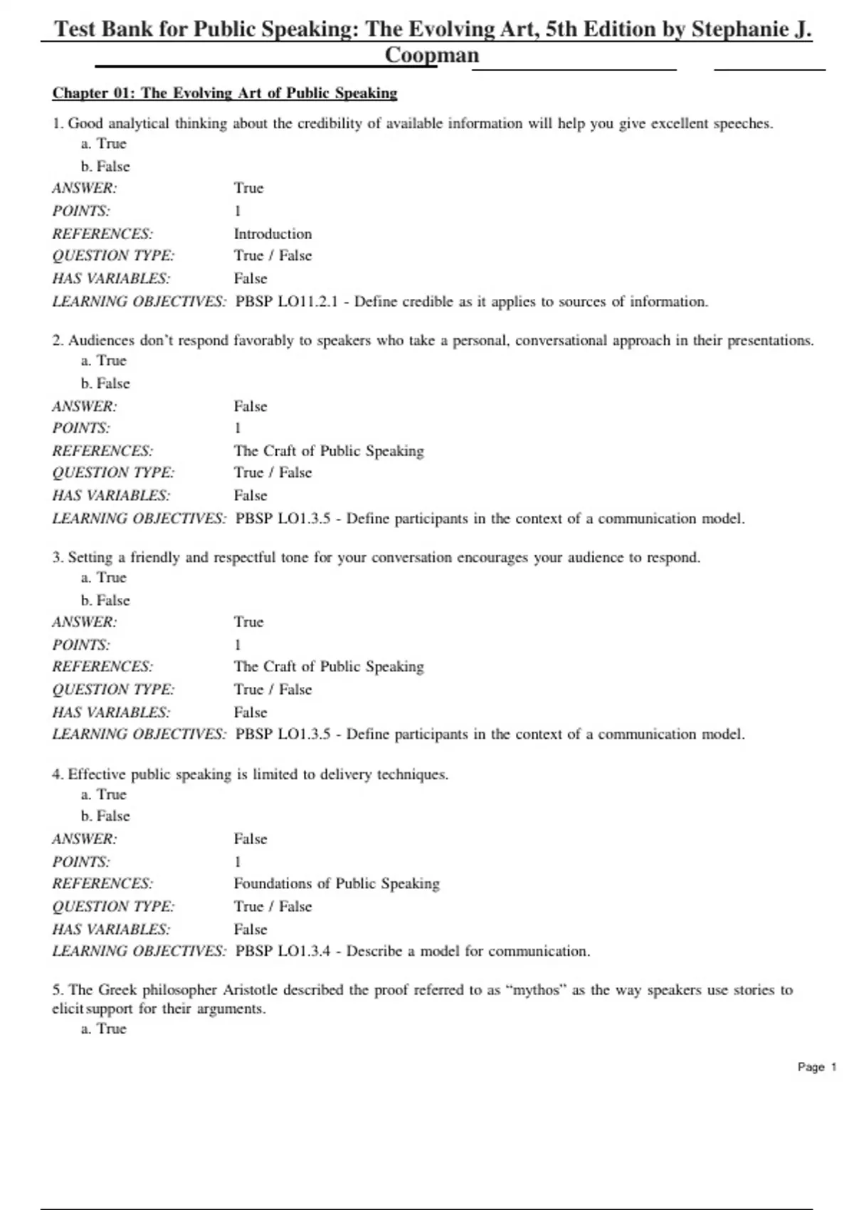 Test Bank for Public Speaking: The Evolving Art, 5th Edition by Stephanie J.