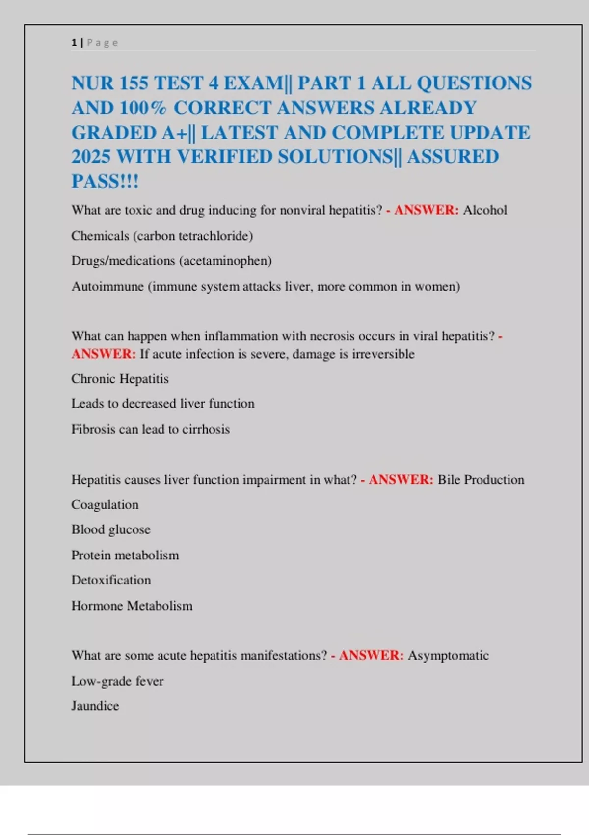 NUR 155 TEST 4 EXAM|| PART 1 ALL QUESTIONS