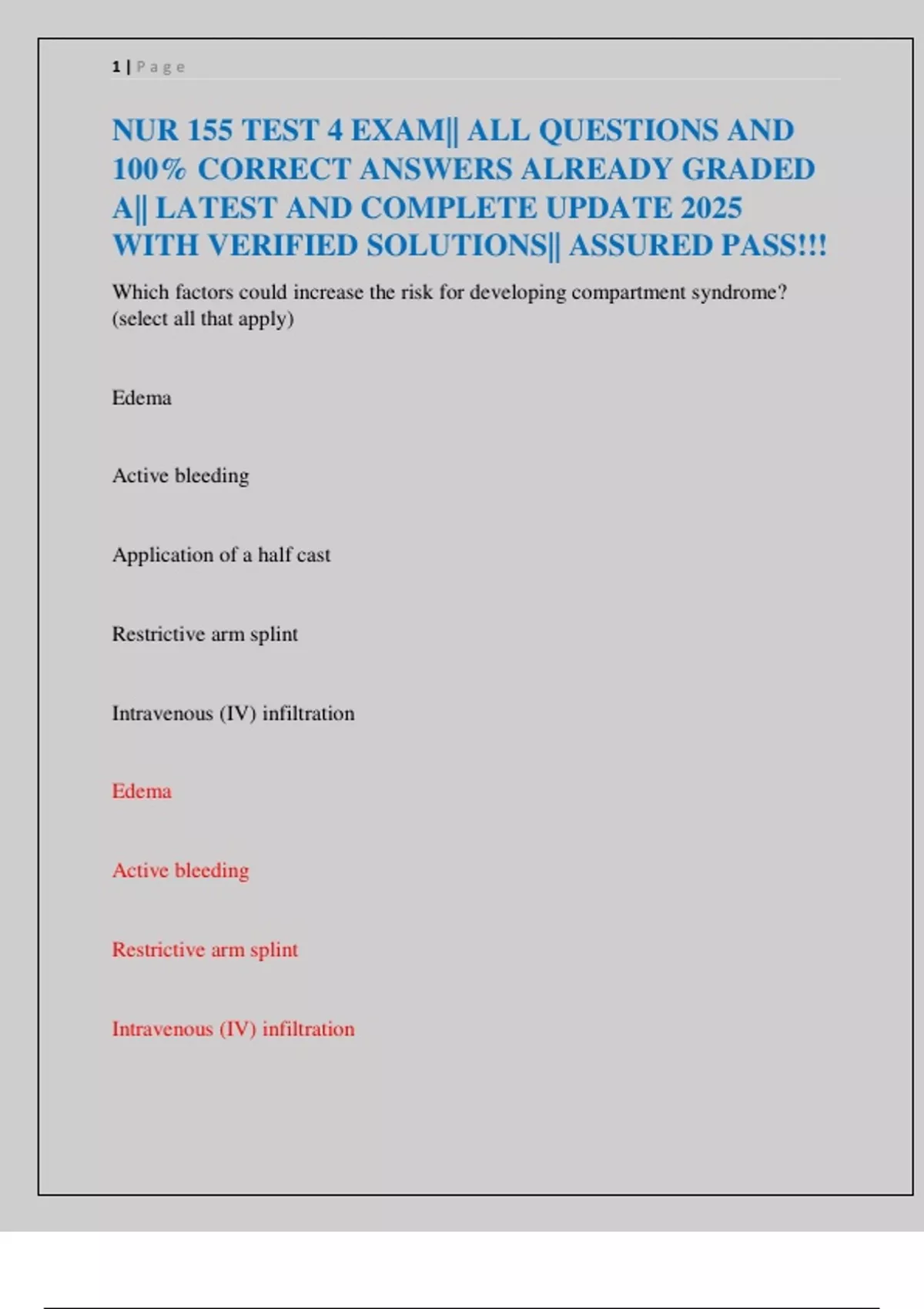 NUR 155 TEST 4 EXAM|| ALL QUESTIONS AND