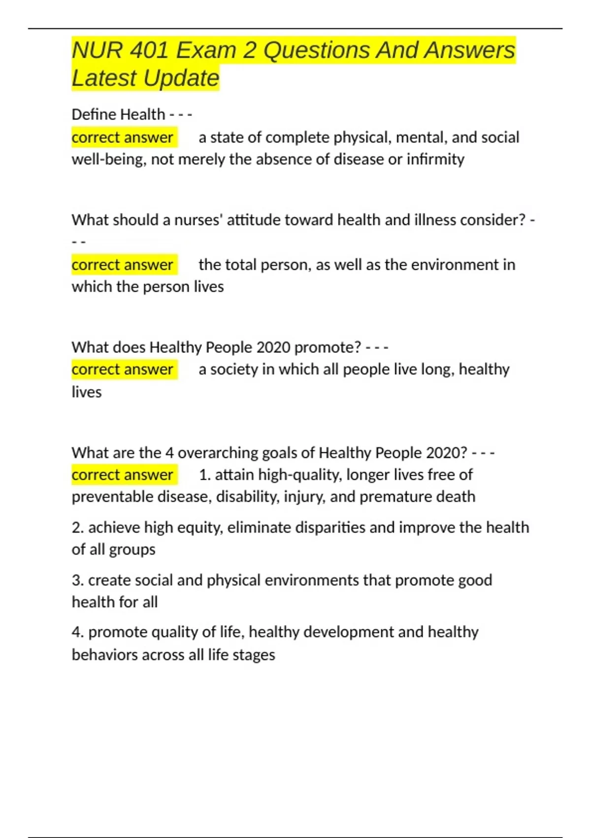 NUR 401 Exam 2 Questions And Answers Latest Update