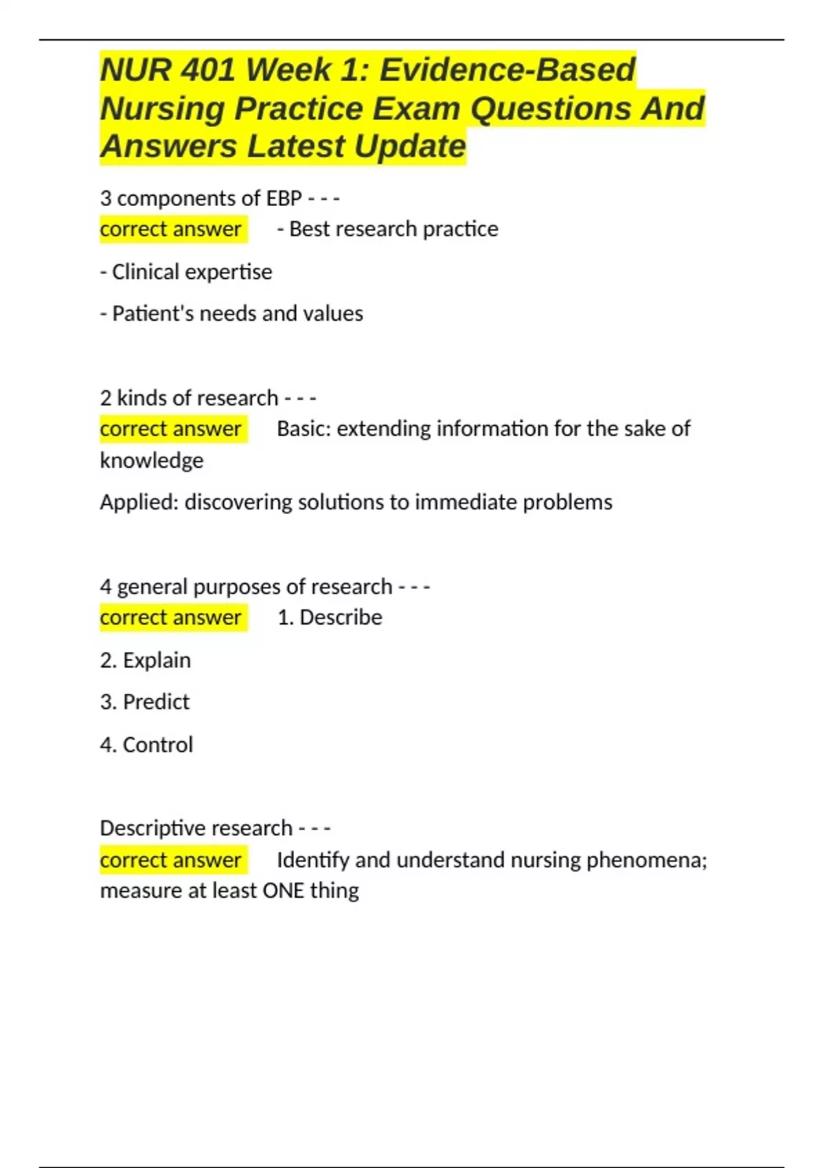 , NUR 401 Week 1: Evidence-Based