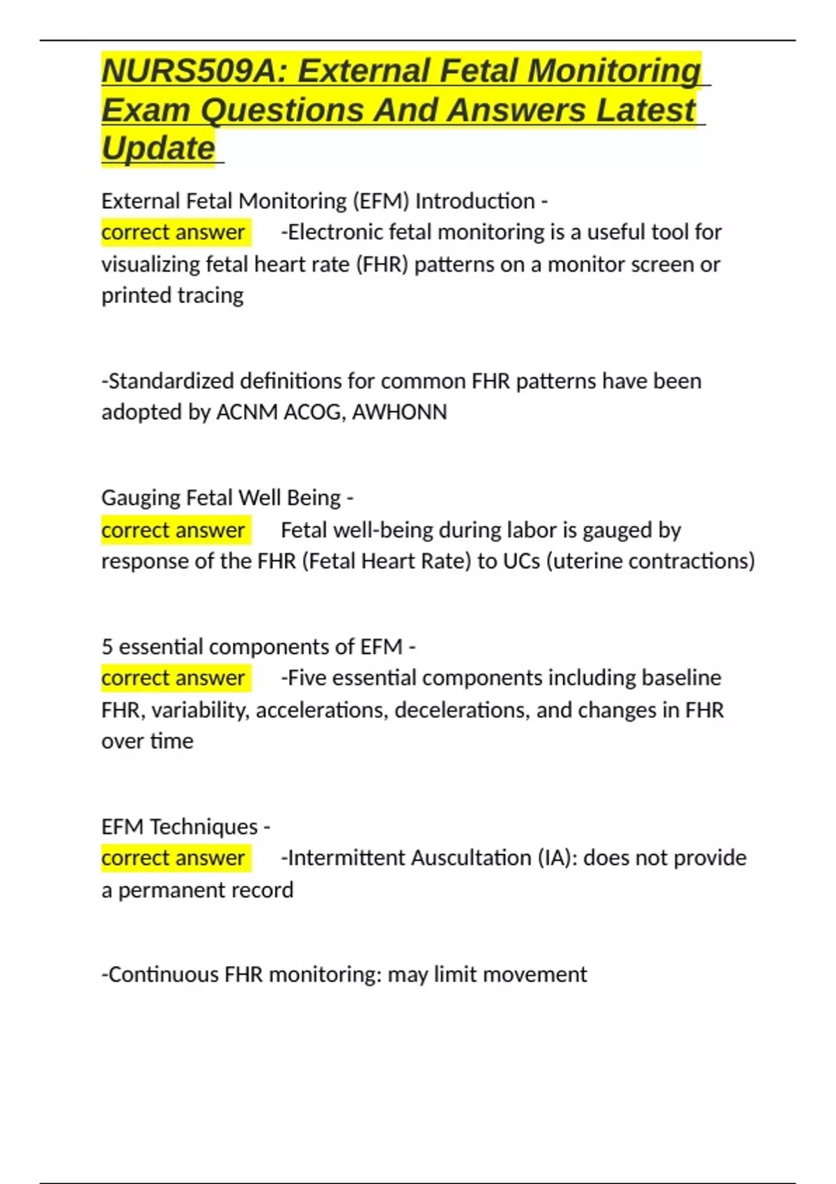 , NURS509A: External Fetal Monitoring