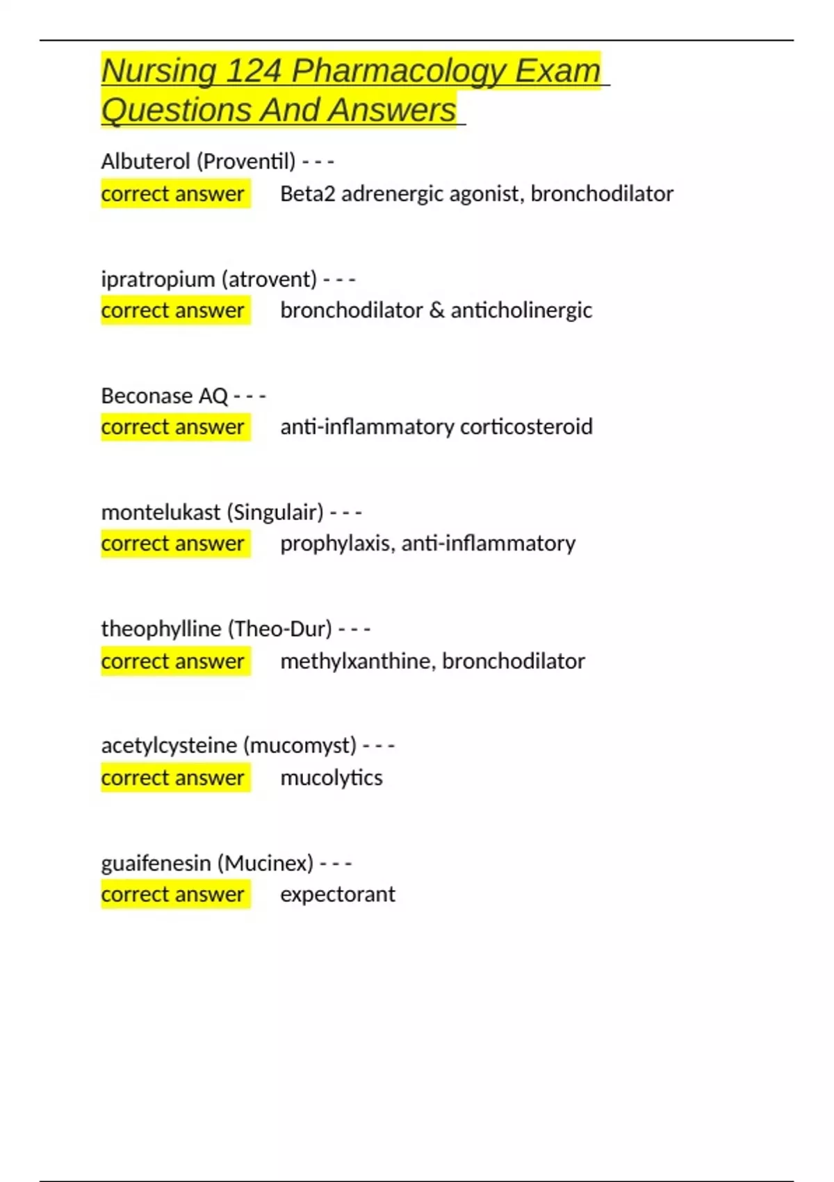 correct answer ✅Beta2 adrenergic agonist, bronchodilator