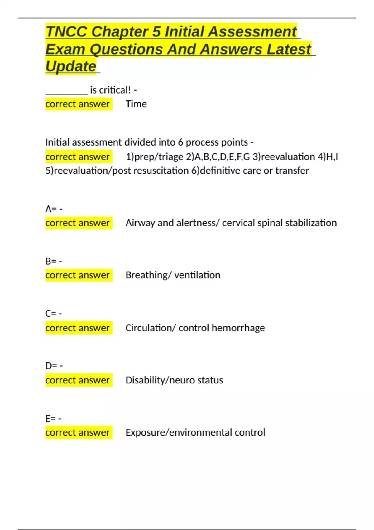 , TNCC Chapter 5 Initial Assessment