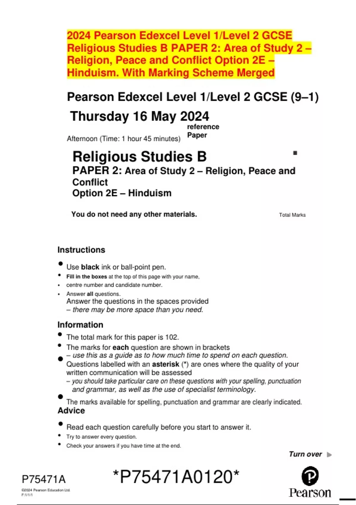 • The total mark for this paper is 102.