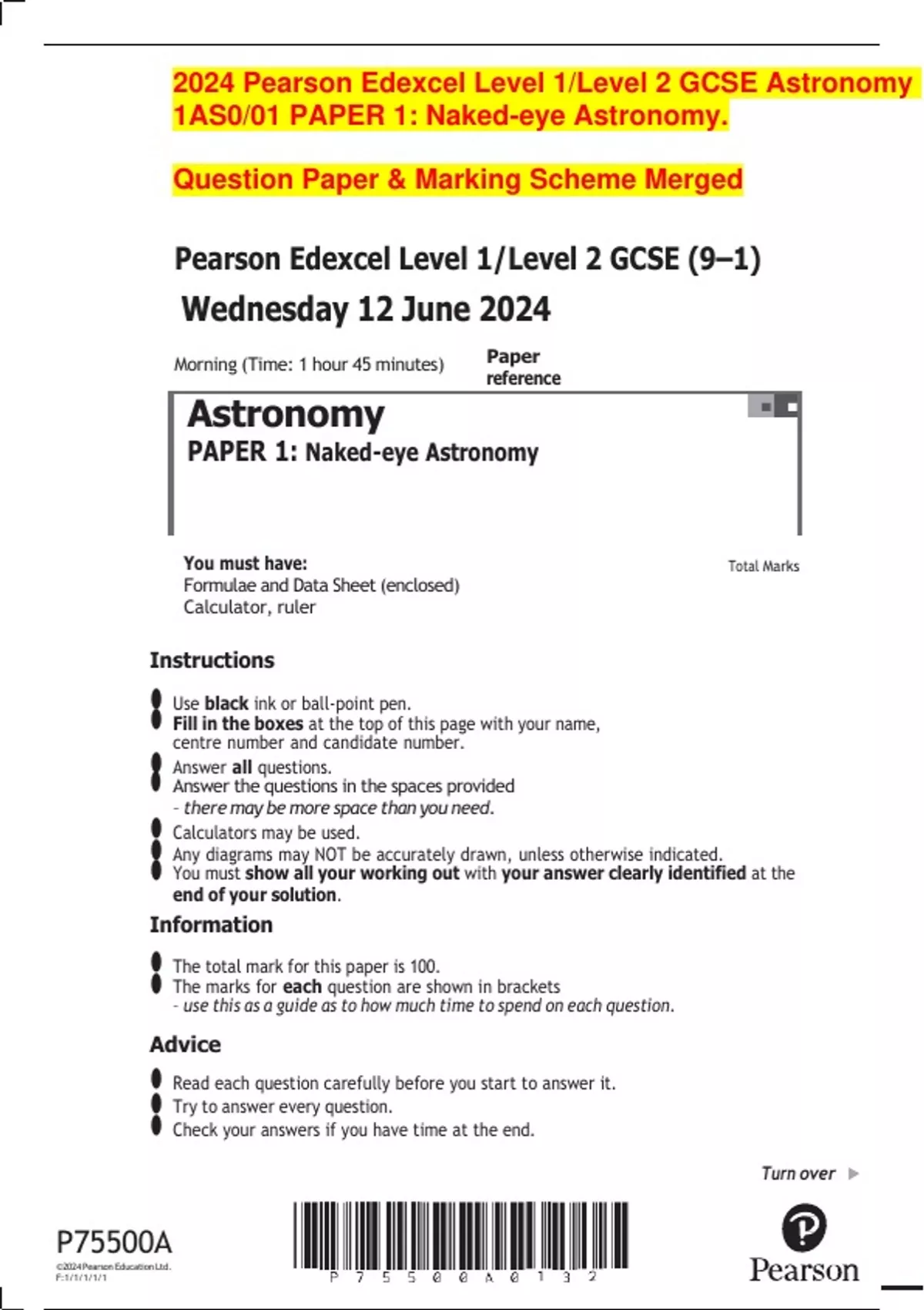 1AS0/01 PAPER 1: Naked-eye Astronomy.