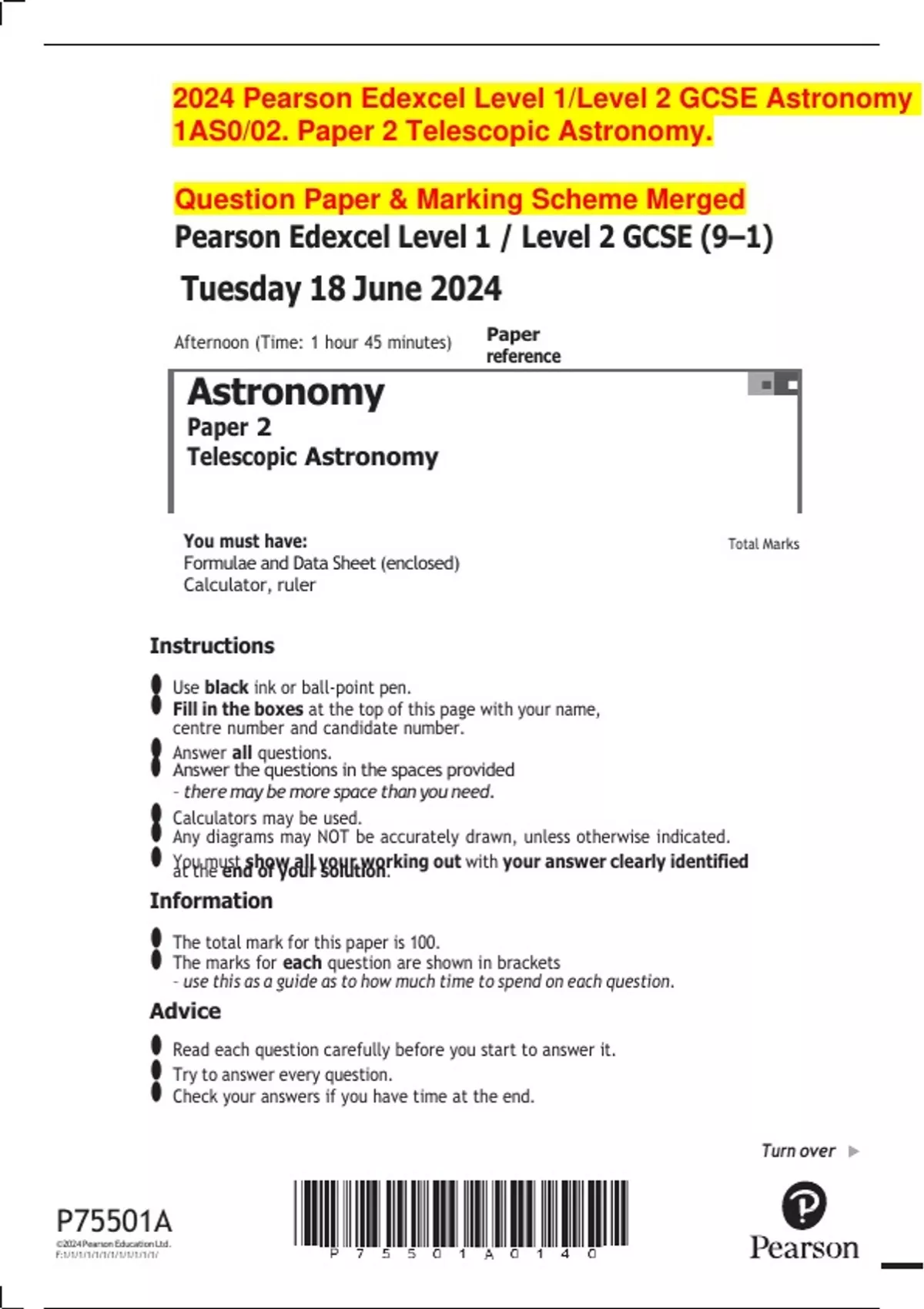 1AS0/02. Paper 2 Telescopic Astronomy.