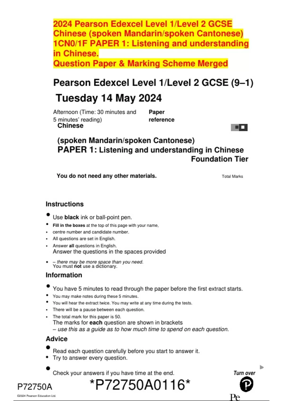 PAPER 1: Listening and understanding in Chinese