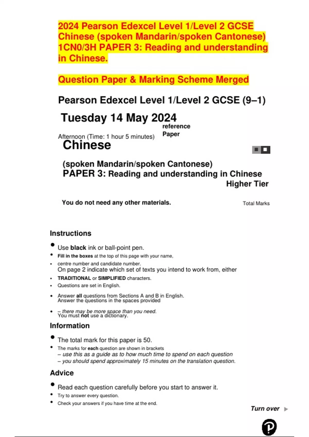 Pearson Edexcel Level 1/Level 2 GCSE (9–1)
