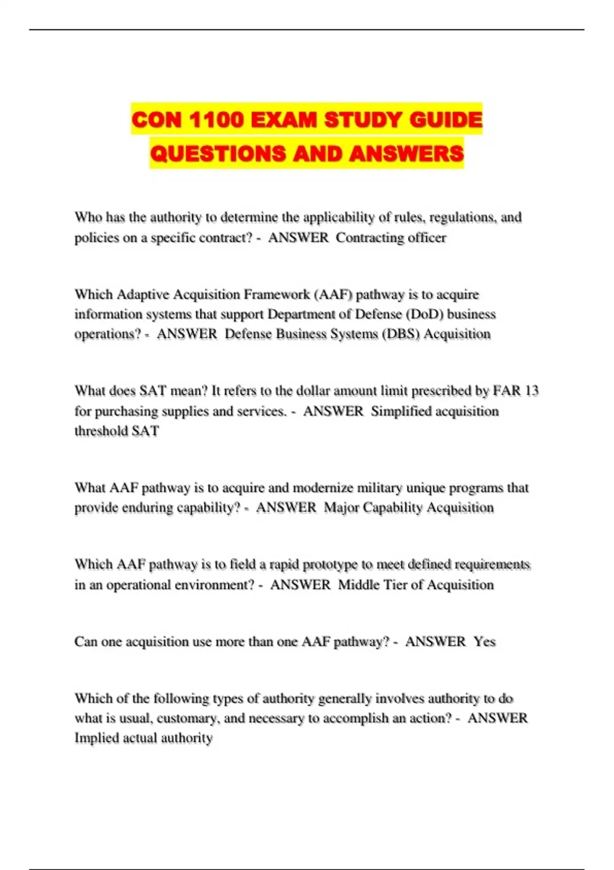 CON 1100 EXAM STUDY GUIDE QUESTIONS AND ANSWERS