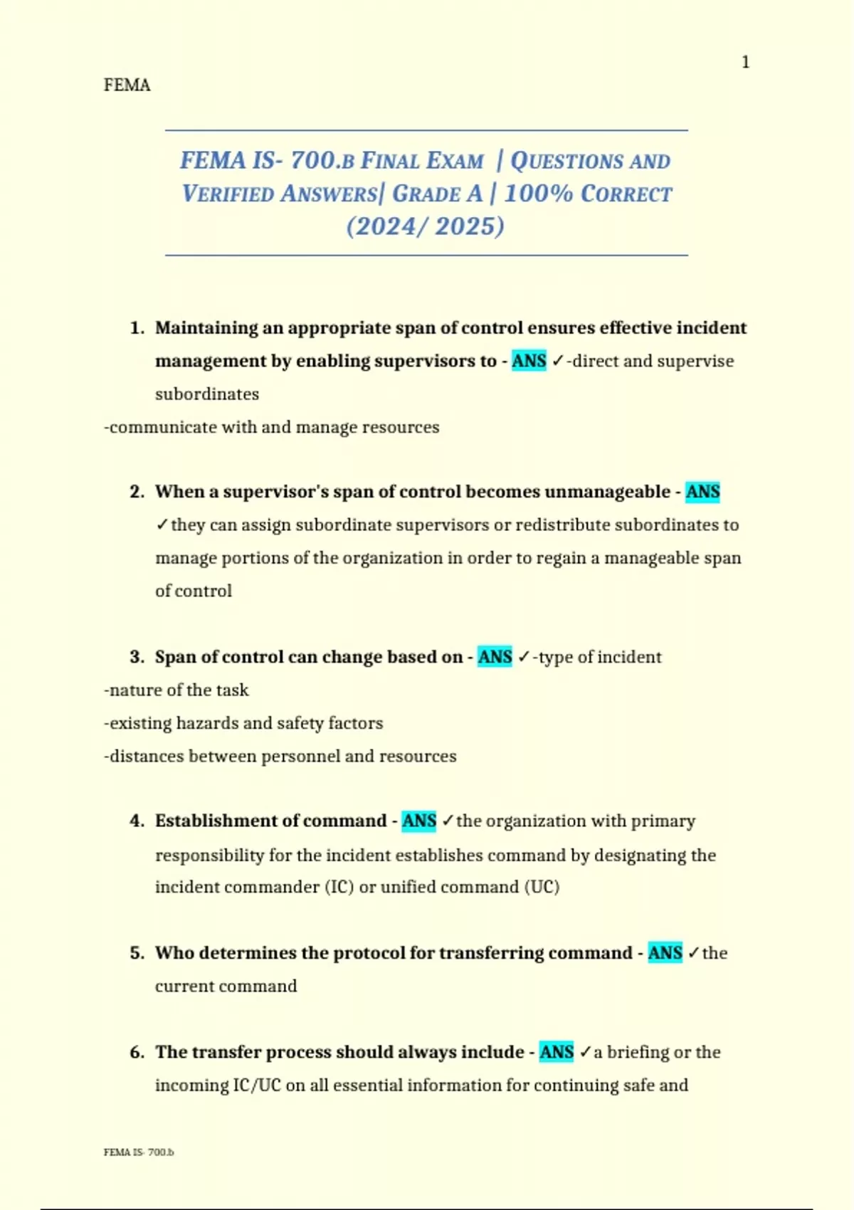 FEMA IS- 700. B FINAL EXAM | QUESTIONS AND