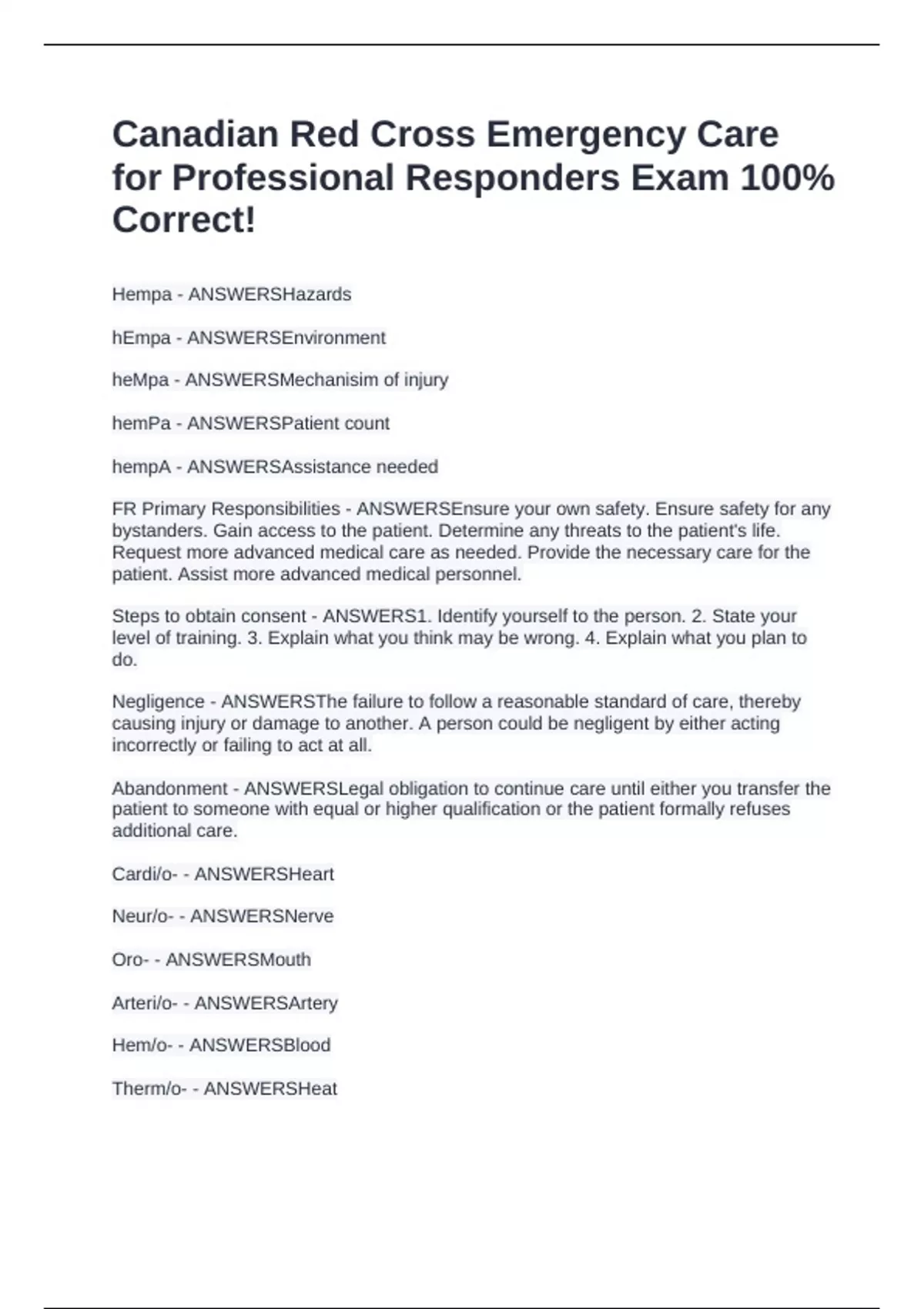 FR Primary Responsibilities - ANSWERSEnsure your own safety. Ensure safety for any
