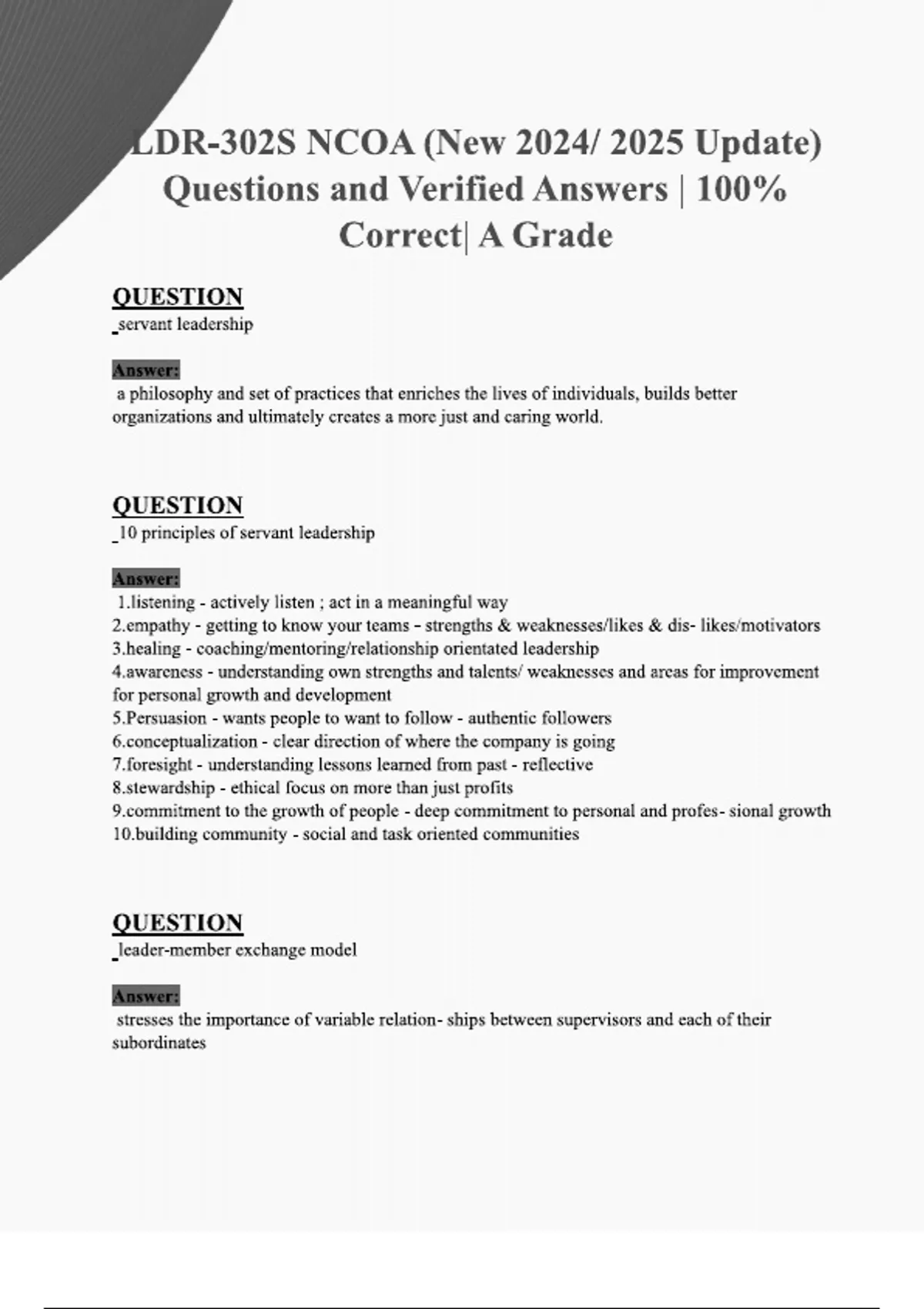 LDR-302S NCOA Questions and Answers |100% Verified Correct Answers | complete solution | Grade A+