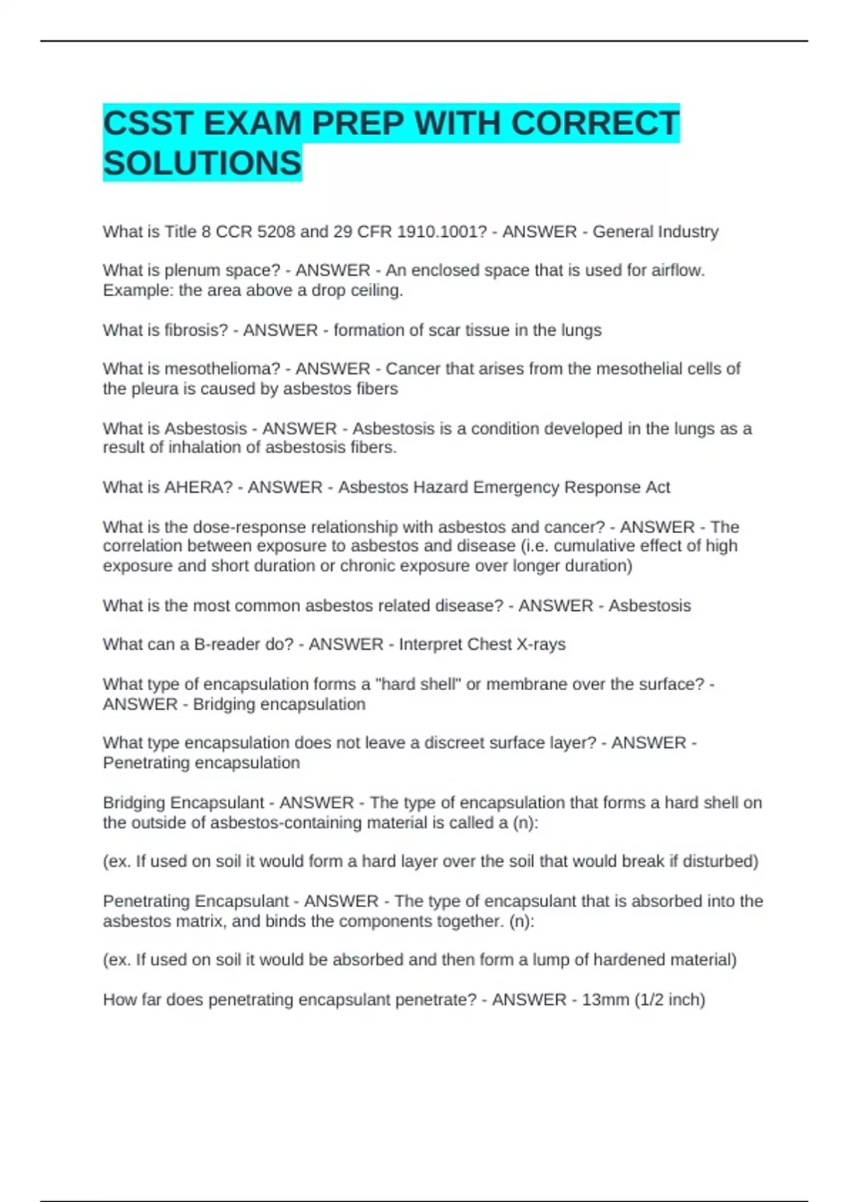 Encapsulate - ANSWER - A liquid material which can be applied to asbestos-containing