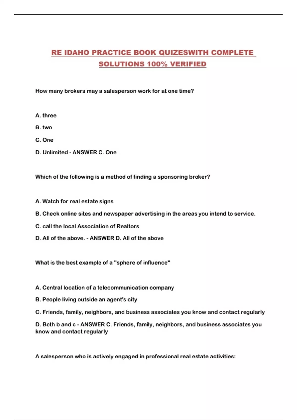 RE IDAHO PRACTICE BOOK QUIZESWITH COMPLETE