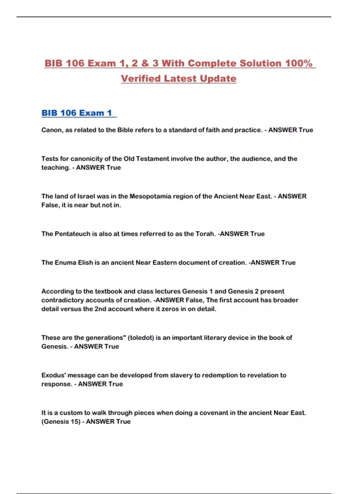 BIB 106 Exam 1, 2 & 3 With Complete Solution 100%