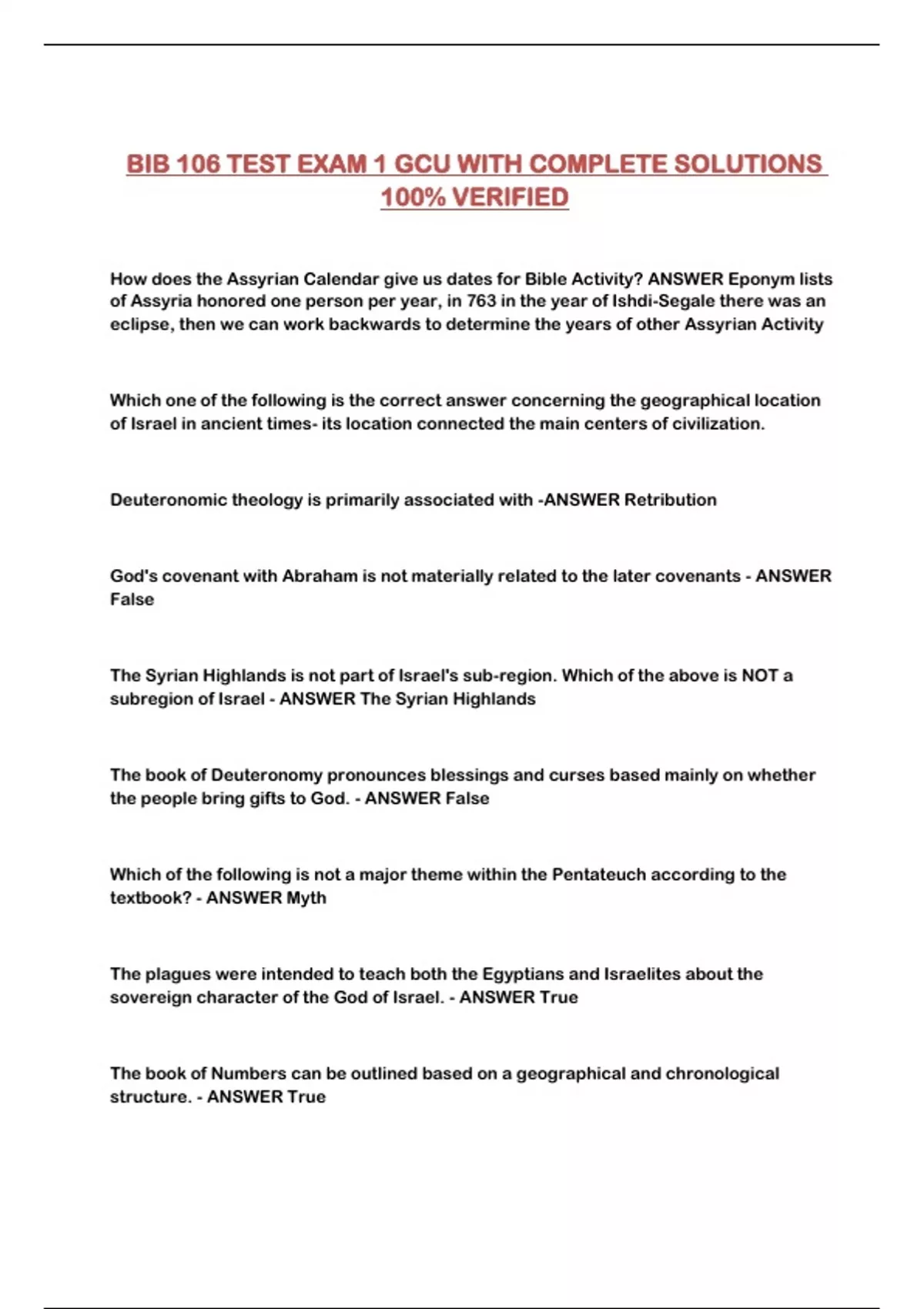 BIB 106 TEST EXAM 1 GCU WITH COMPLETE SOLUTIONS 100% VERIFIED...