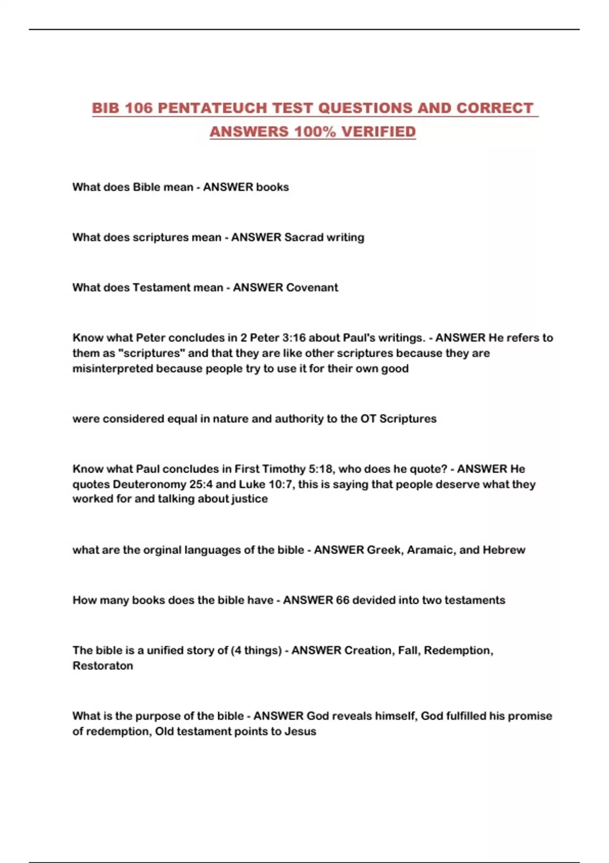 BIB 106 PENTATEUCH TEST QUESTIONS AND CORRECT