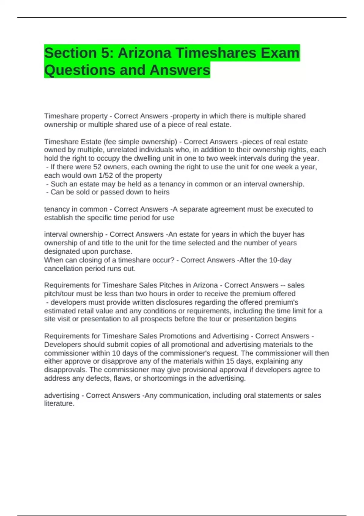 Requirements for Timeshare Sales Pitches in Arizona - Correct Answers -- sales