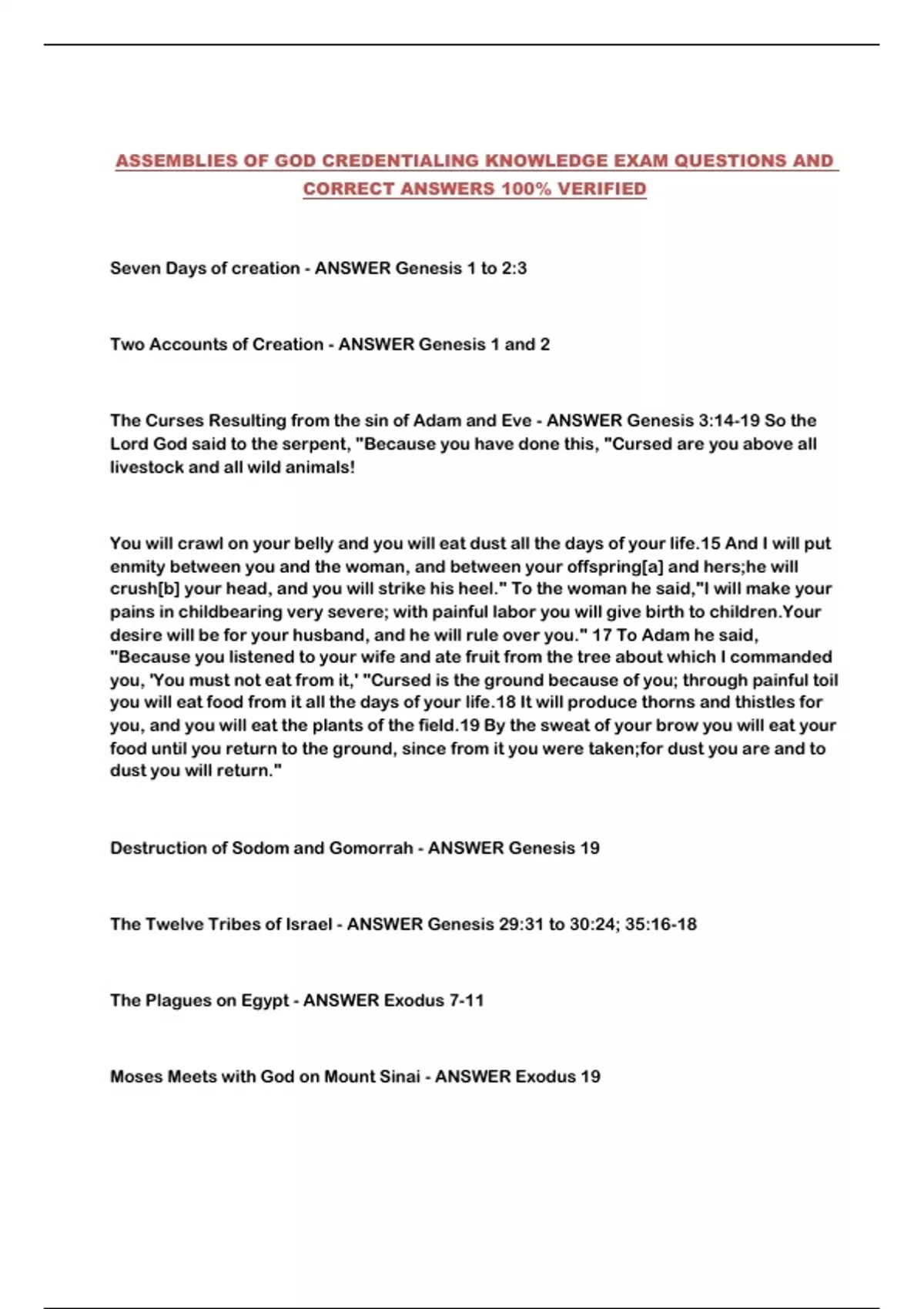 ASSEMBLIES OF GOD CREDENTIALING KNOWLEDGE EXAM QUESTIONS AND