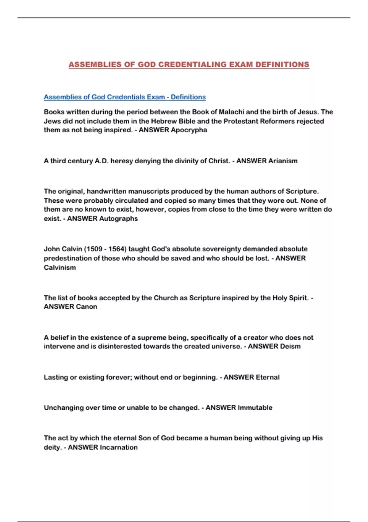 ASSEMBLIES OF GOD CREDENTIALING EXAM DEFINITIONS