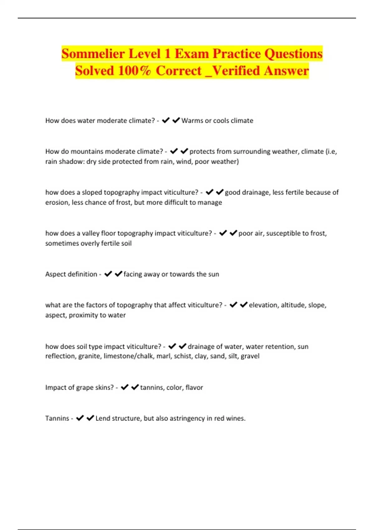 Sommelier Level 1 Exam Practice Questions Solved 100% Correct _Verified Answer