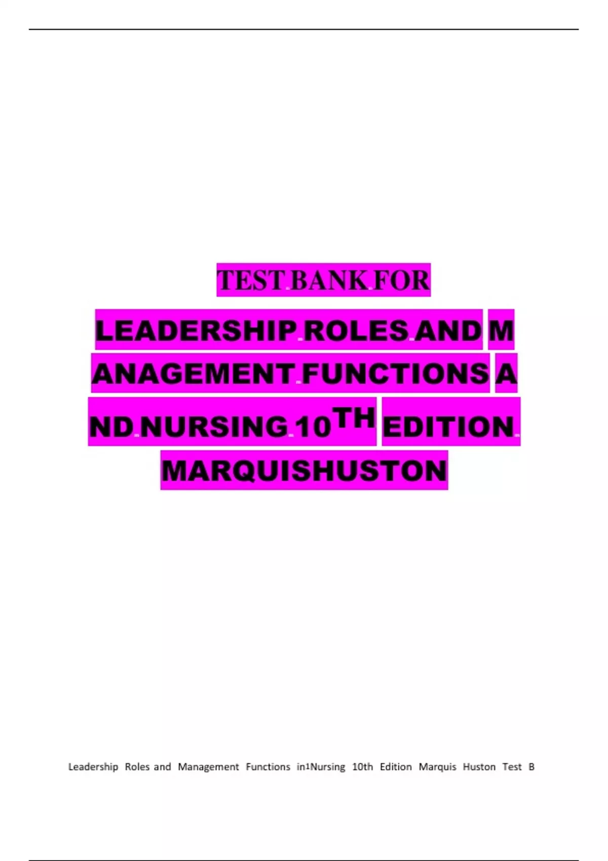 Leadershipm Rolesmandm Managementm Functionsm in1Nursingm 10thm Editionm Marquism Hustonm Testm B