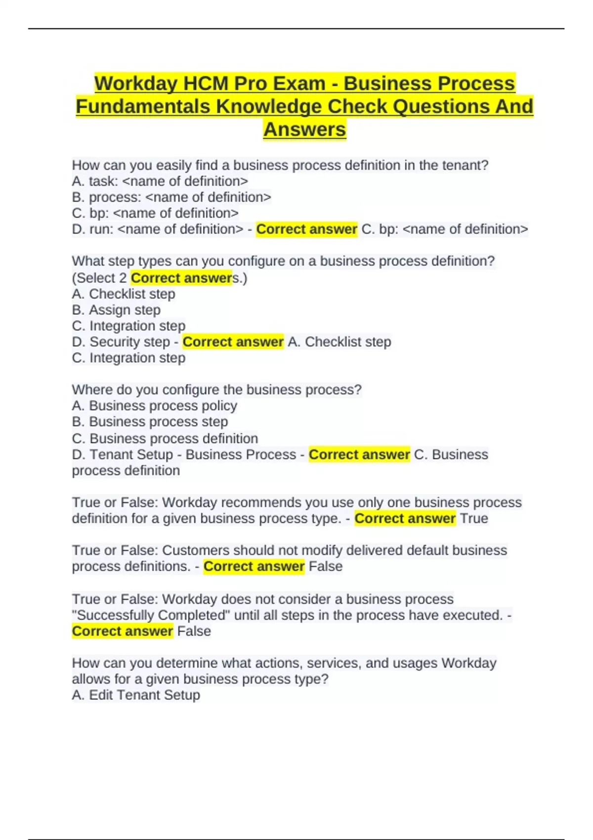 Workday HCM Pro Exam - Business Process
