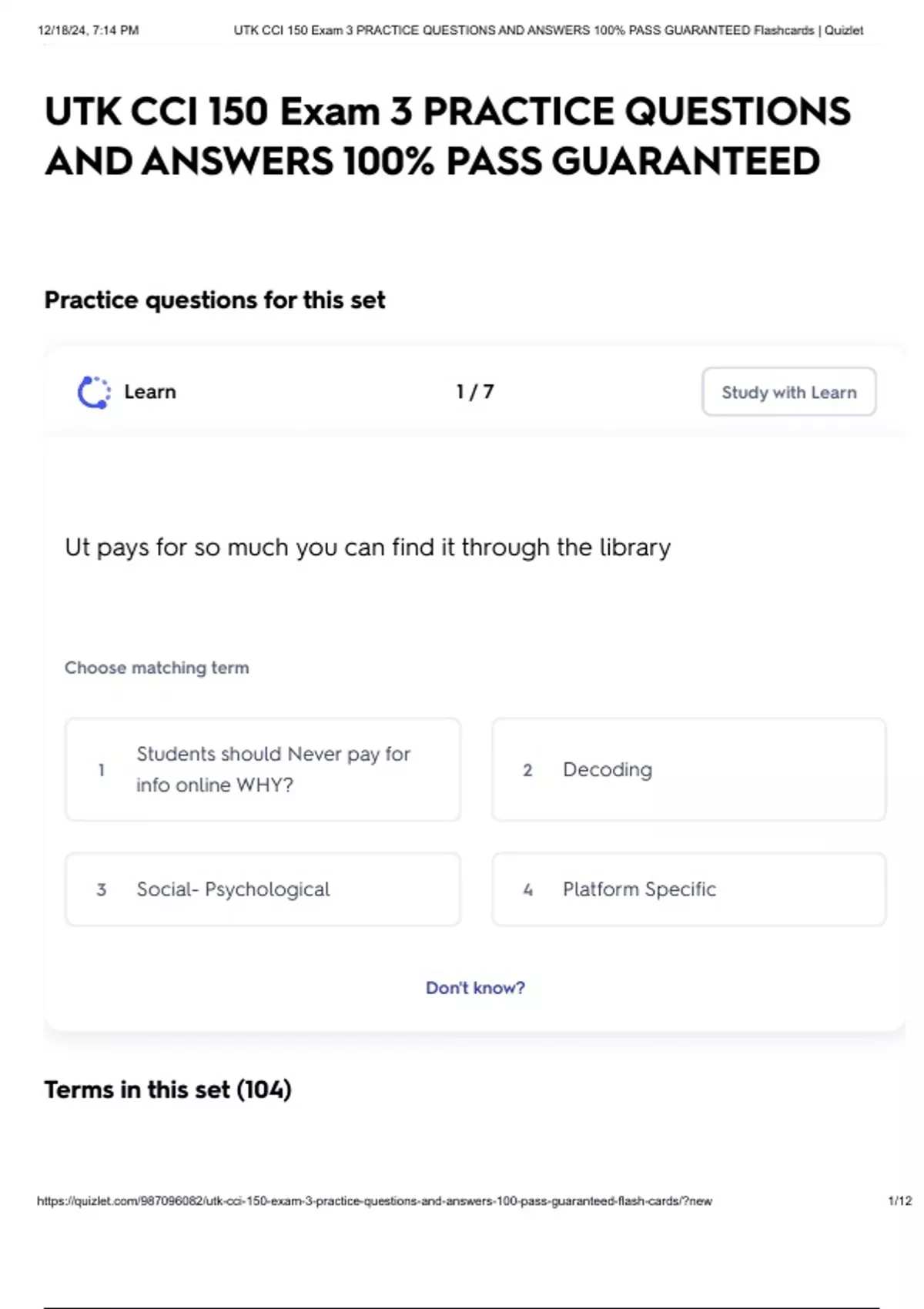 , 12/18/24, 7:14 PM UTK CCI 150 Exam 3 PRACTICE QUESTIONS AND ANSWERS 100% PASS GUARANTEED Flashcards | Quizlet