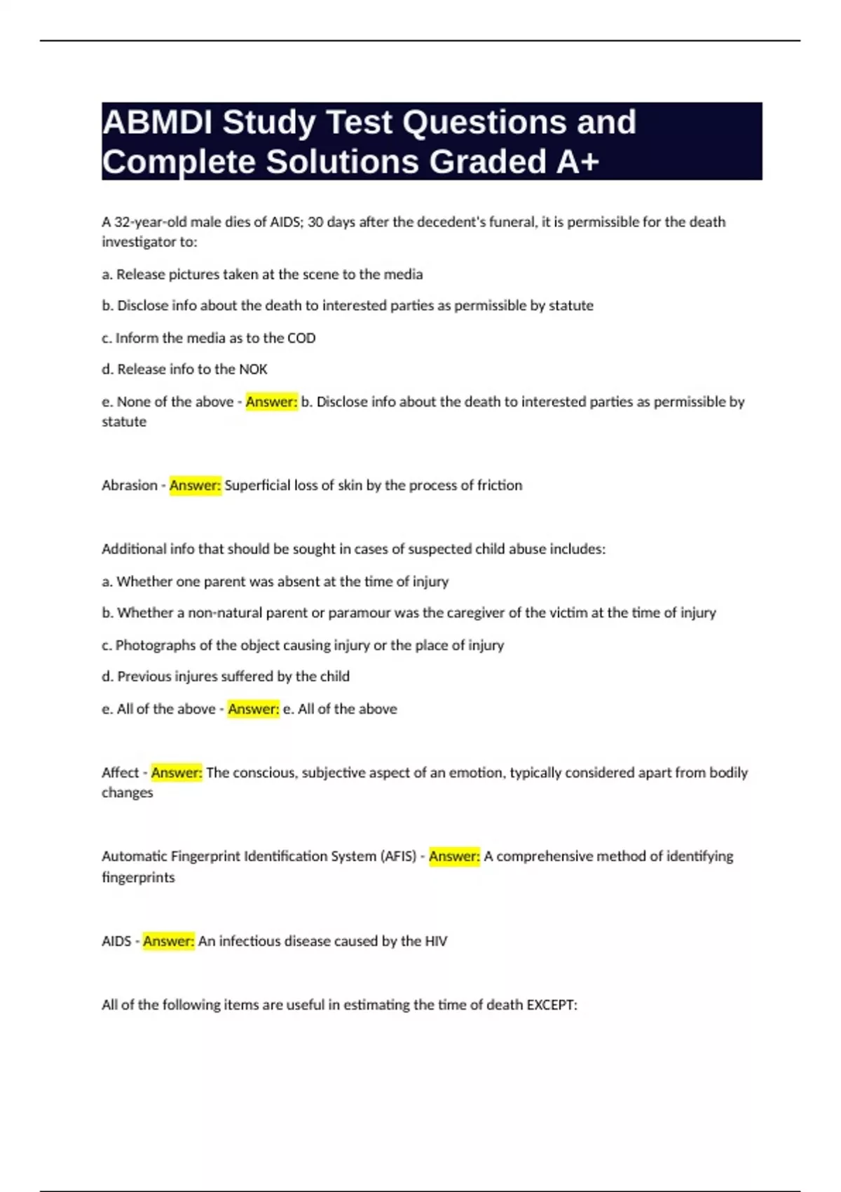 e. None of the above - Answer: b. Disclose info about the death to interested parties as permissible by