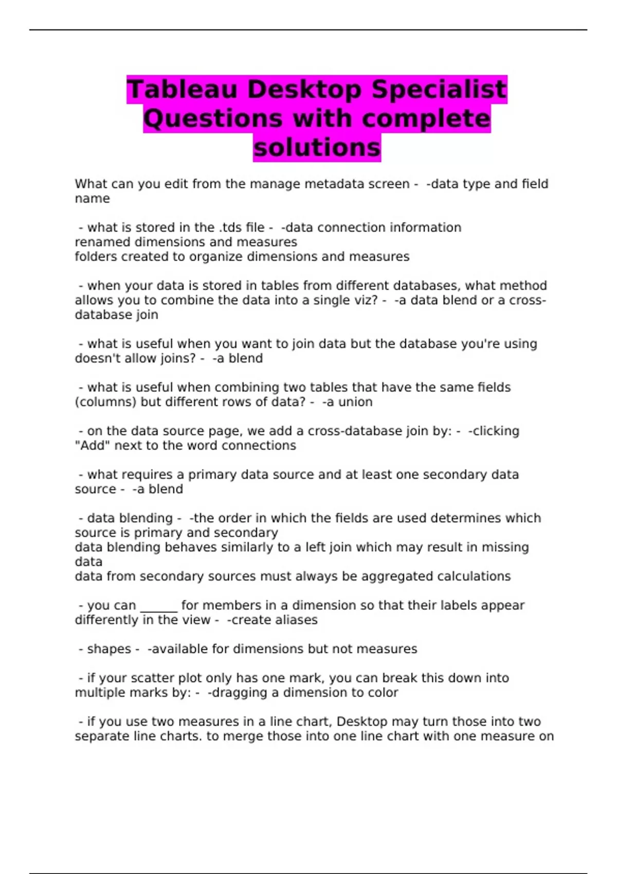Tableau Desktop Specialist Questions with complete solutions