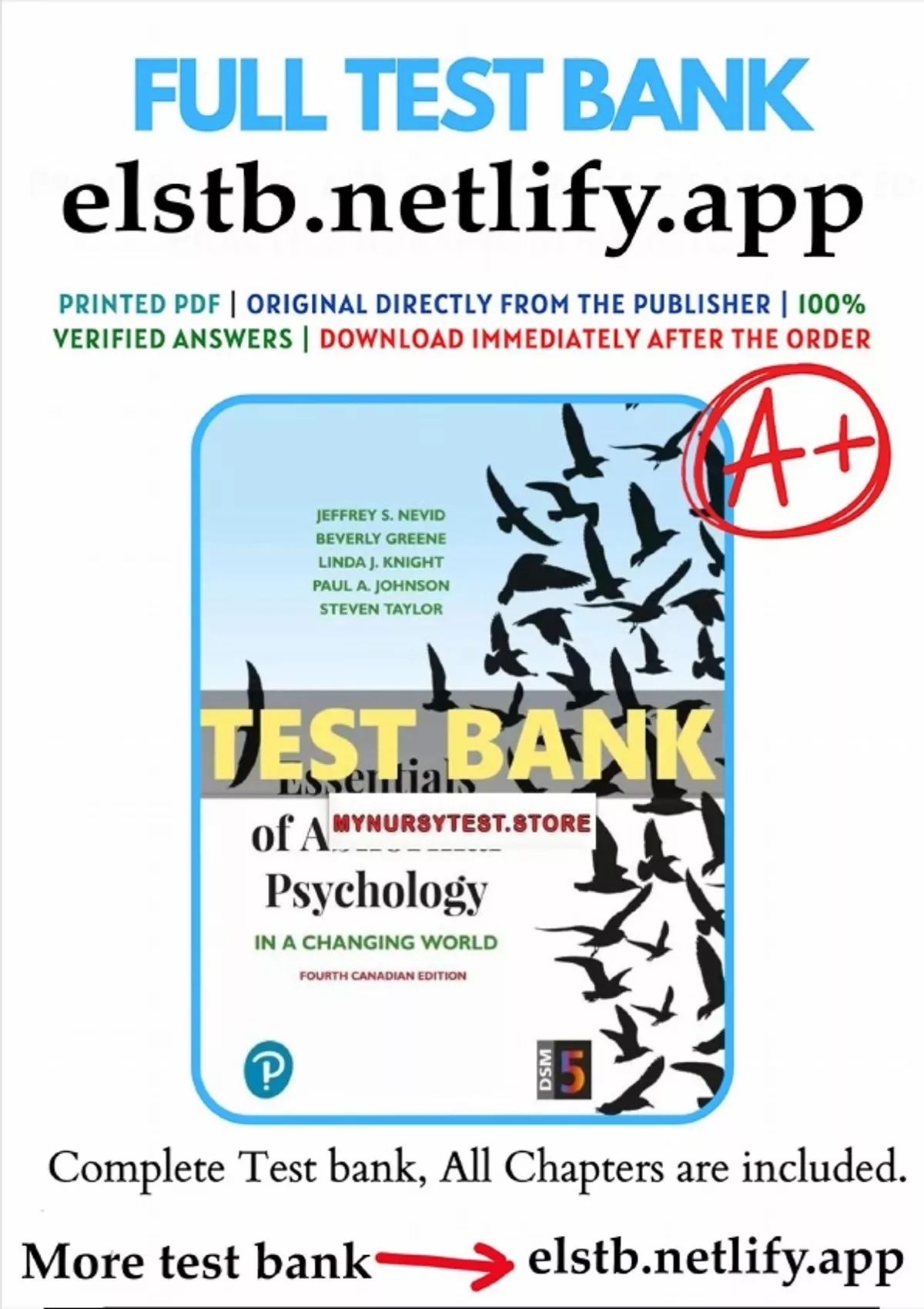 , DOWNLOAD THE Test Bank for Essentials of Abnormal Psychology 4th Editi