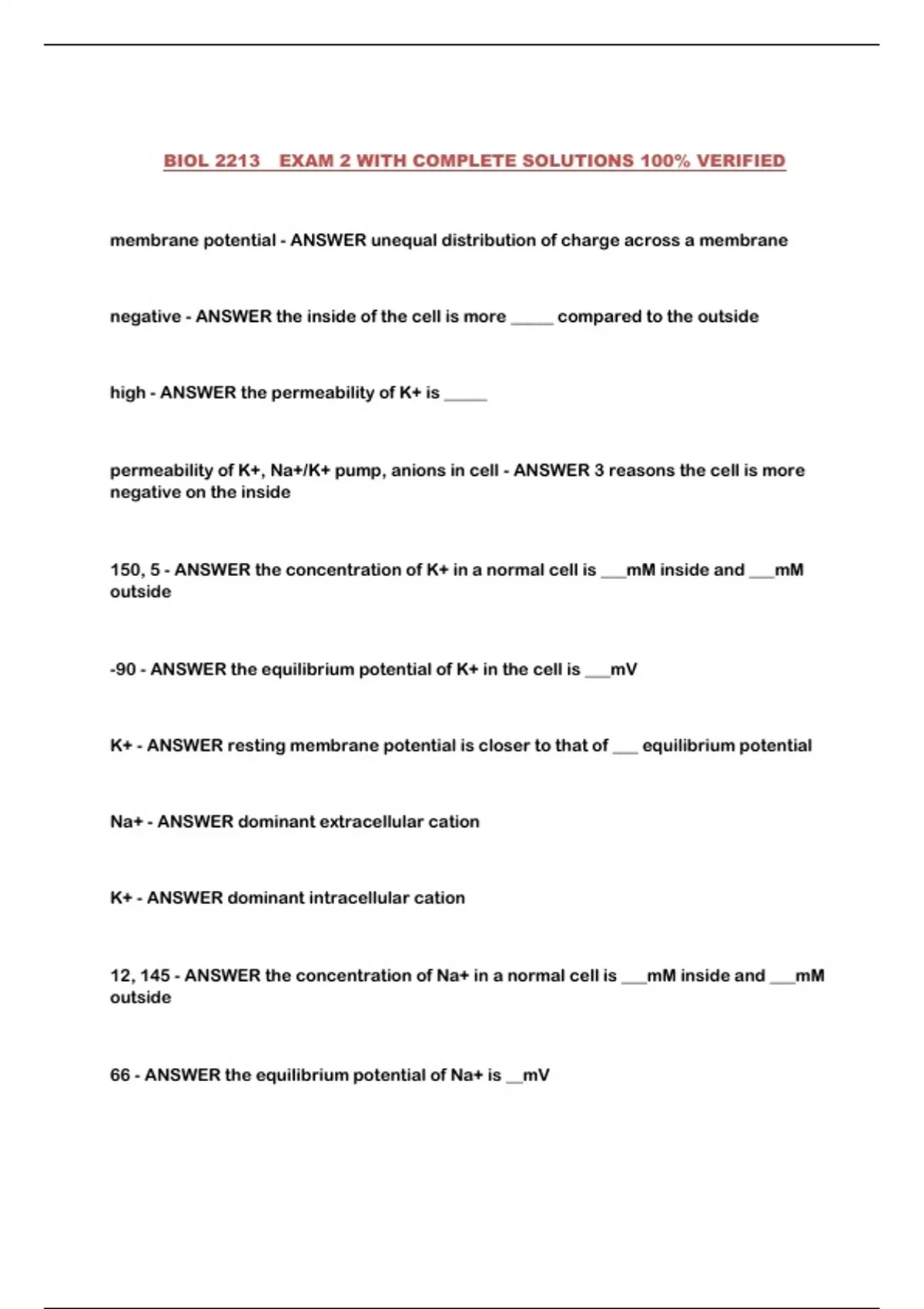 BIOL 2213 EXAM 2 WITH COMPLETE SOLUTIONS 100% VERIFIED...