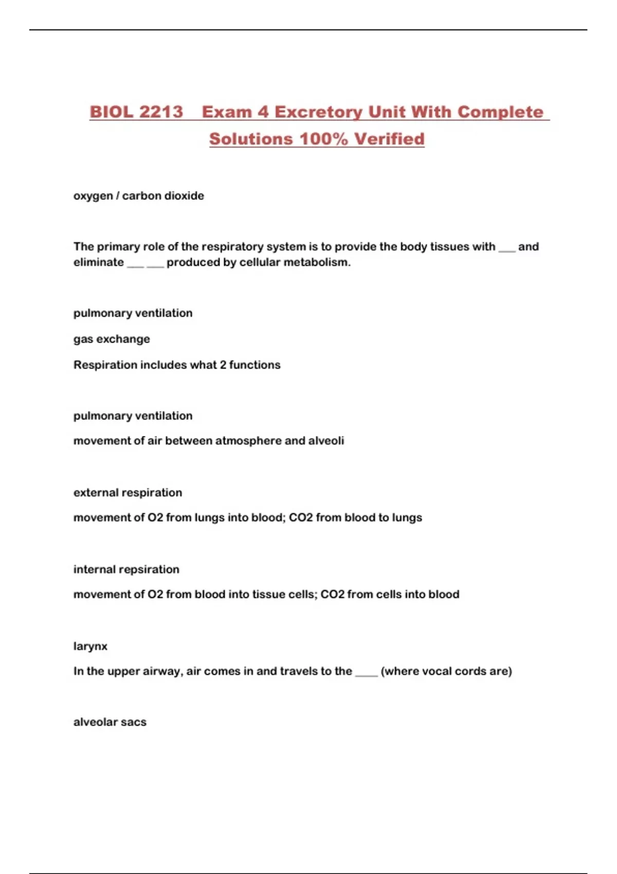 BIOL 2213 Exam 4 Excretory Unit With Complete