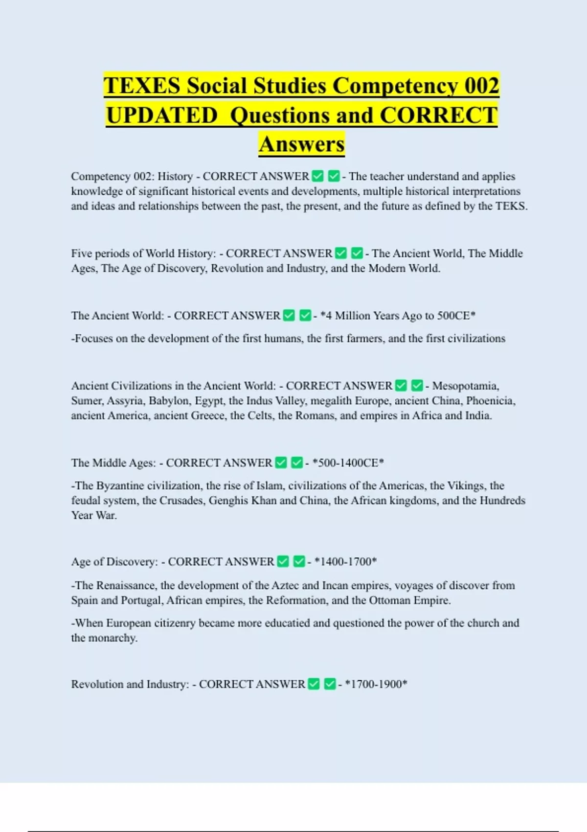 Competency 002: History - CORRECT ANSWER - The teacher understand and applies