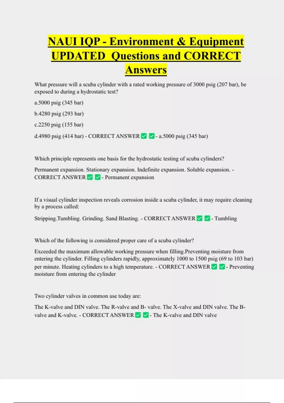 d.4980 psig (414 bar) - CORRECT ANSWER - a.5000 psig (345 bar)
