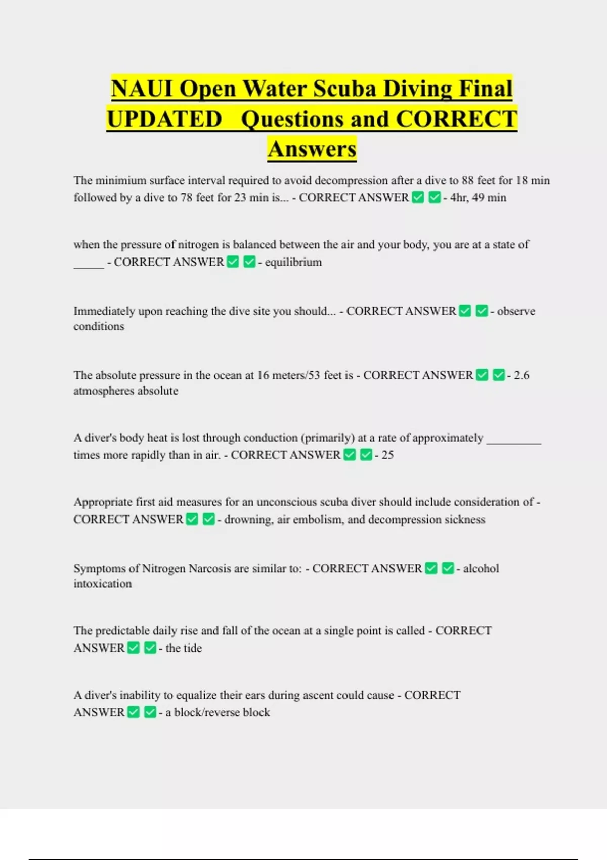 NAUI Open Water Scuba Diving Final UPDATED Questions and CORRECT Answers