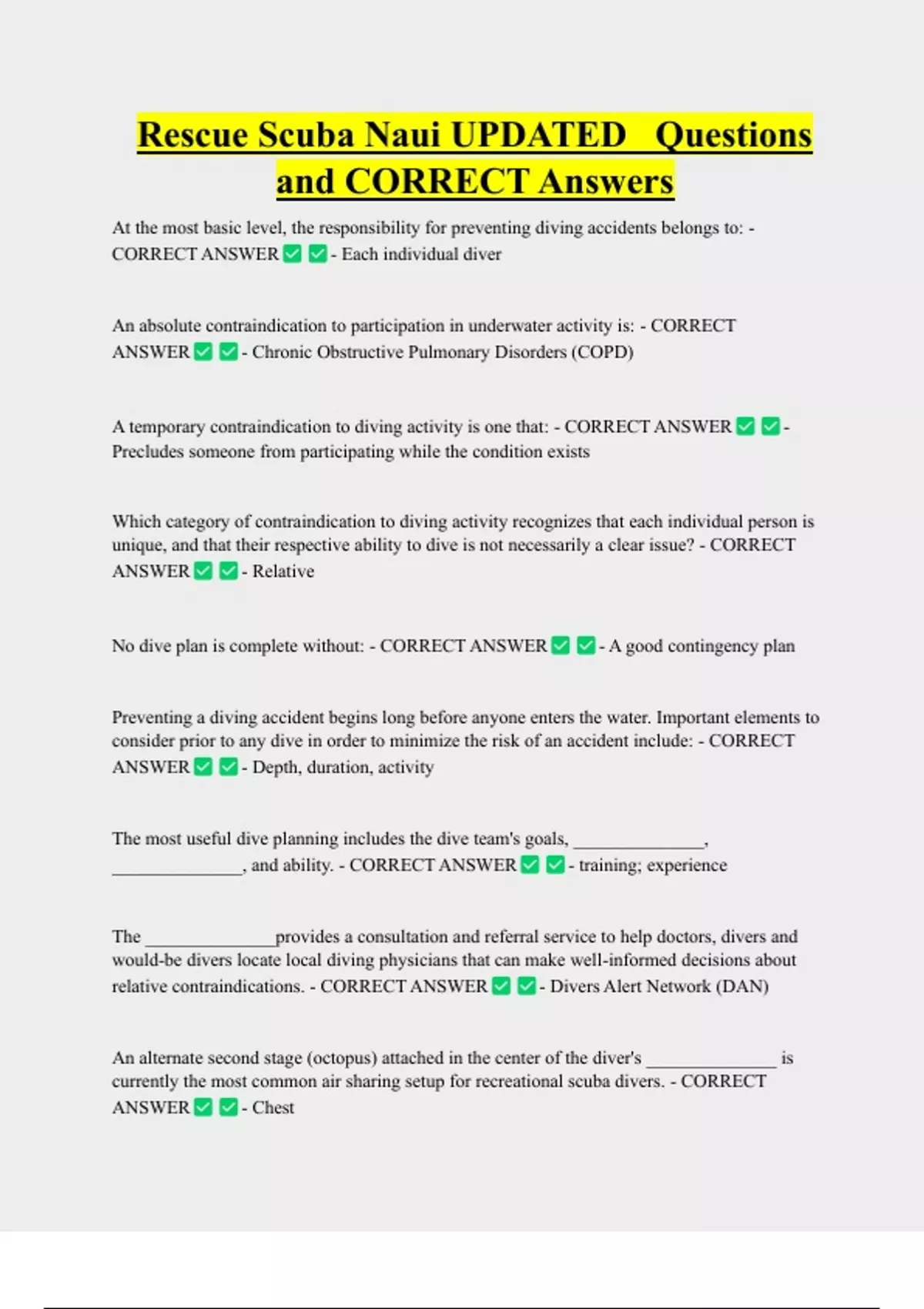 Rescue Scuba Naui UPDATED Questions and CORRECT Answers