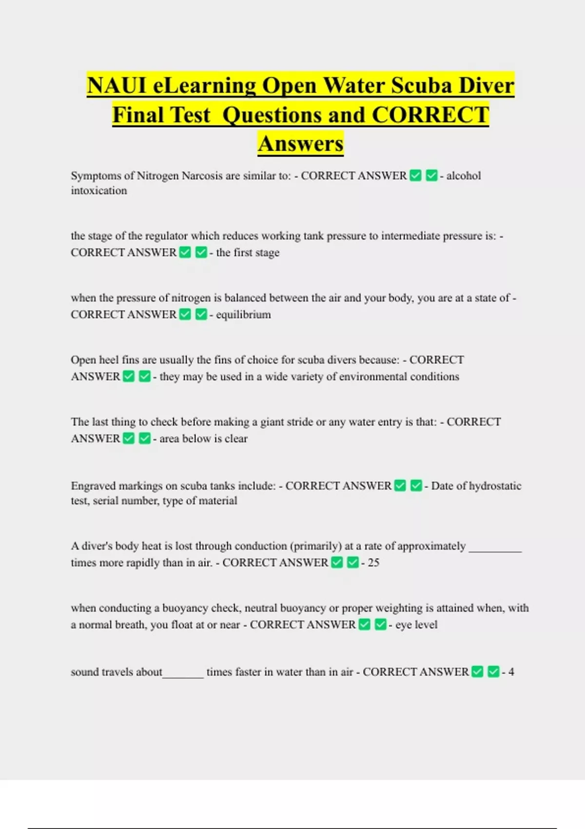 Symptoms of Nitrogen Narcosis are similar to: - CORRECT ANSWER - alcohol
