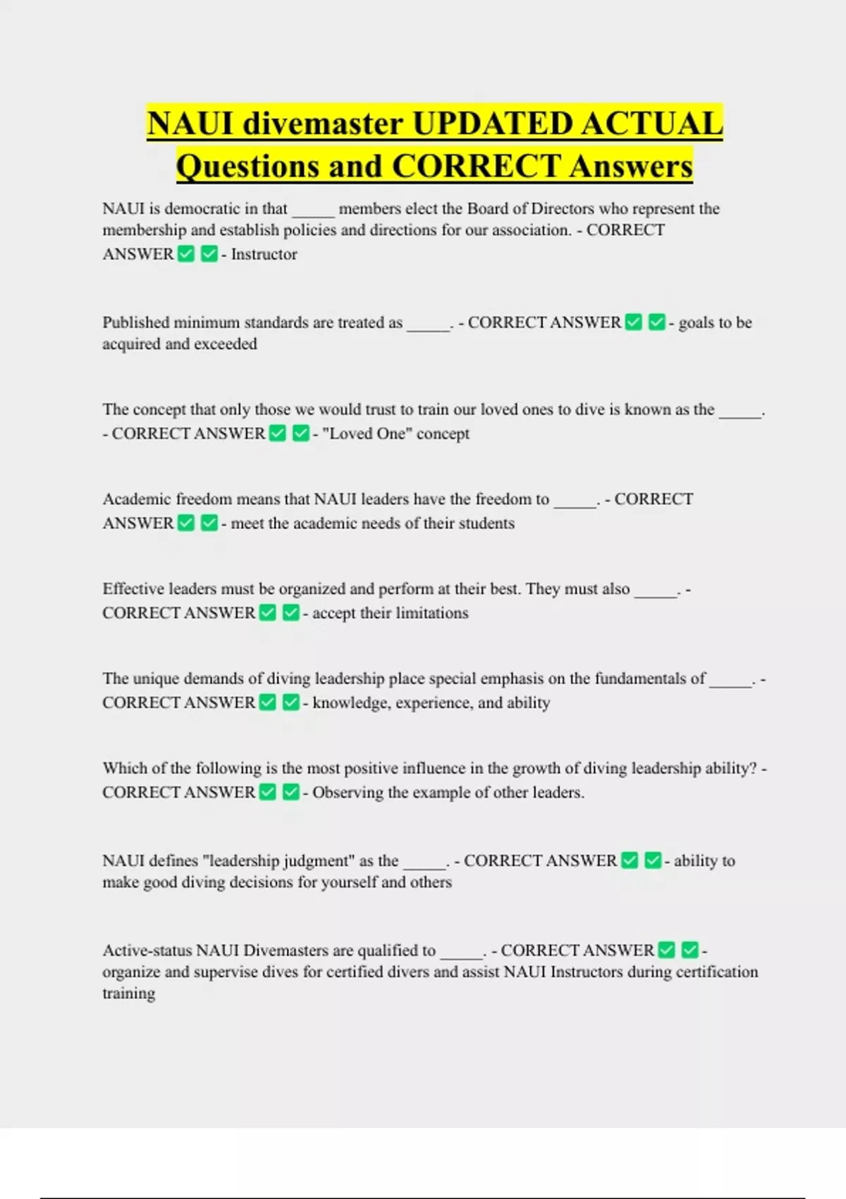 A NAUI Divemaster certification means you _____. - CORRECT ANSWER - have earned