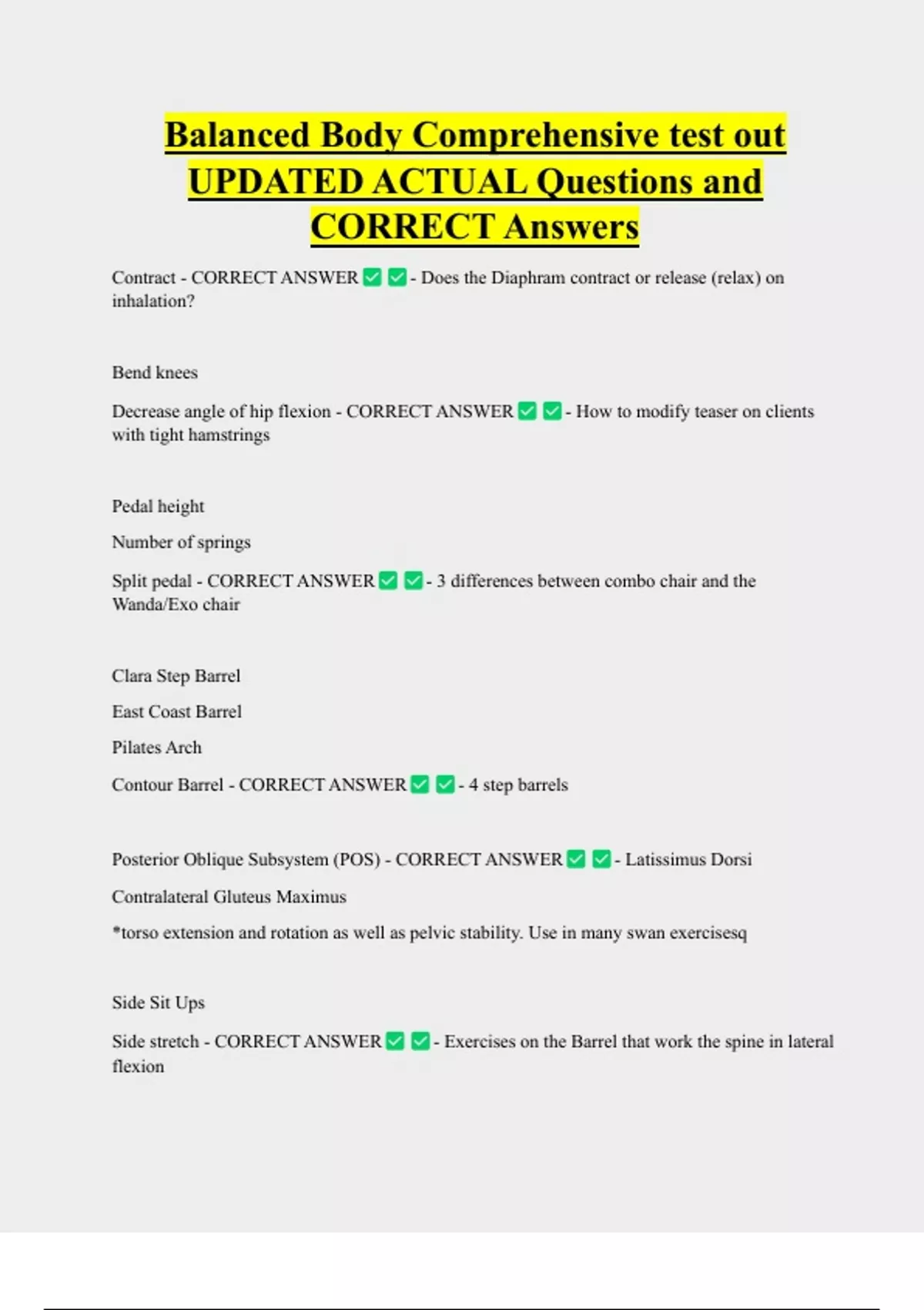 Balanced Body Comprehensive test out UPDATED ACTUAL Questions and CORRECT Answers