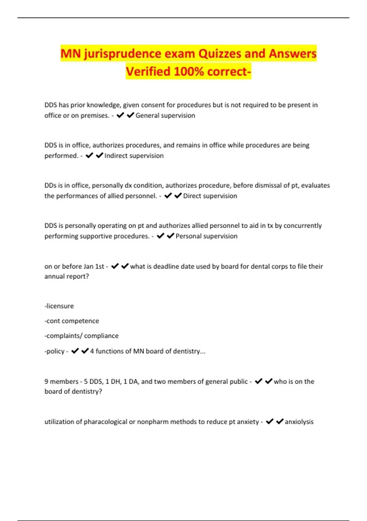 MN jurisprudence exam Quizzes and Answers Verified 100% correct