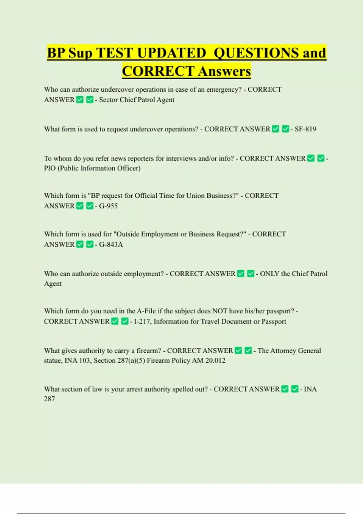 BP Sup TEST UPDATED QUESTIONS and