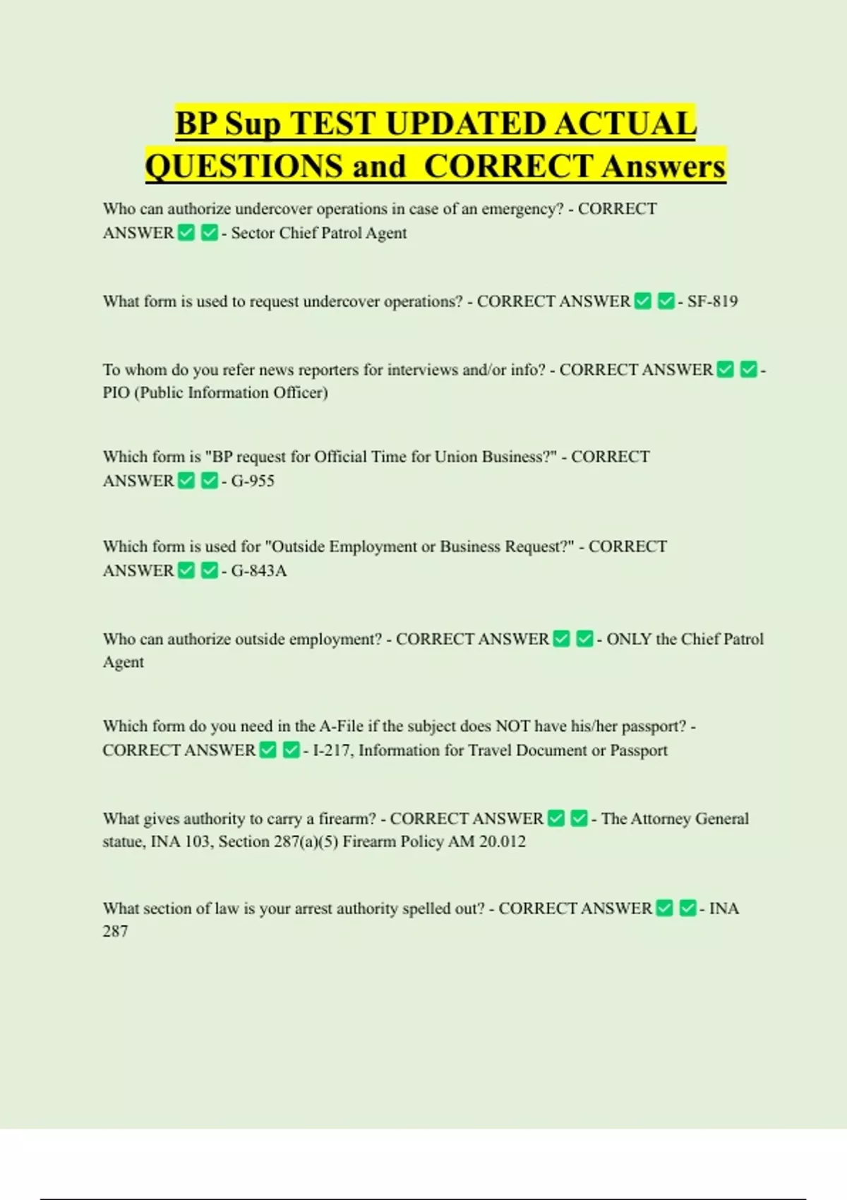 BP Sup TEST UPDATED ACTUAL QUESTIONS and CORRECT Answers